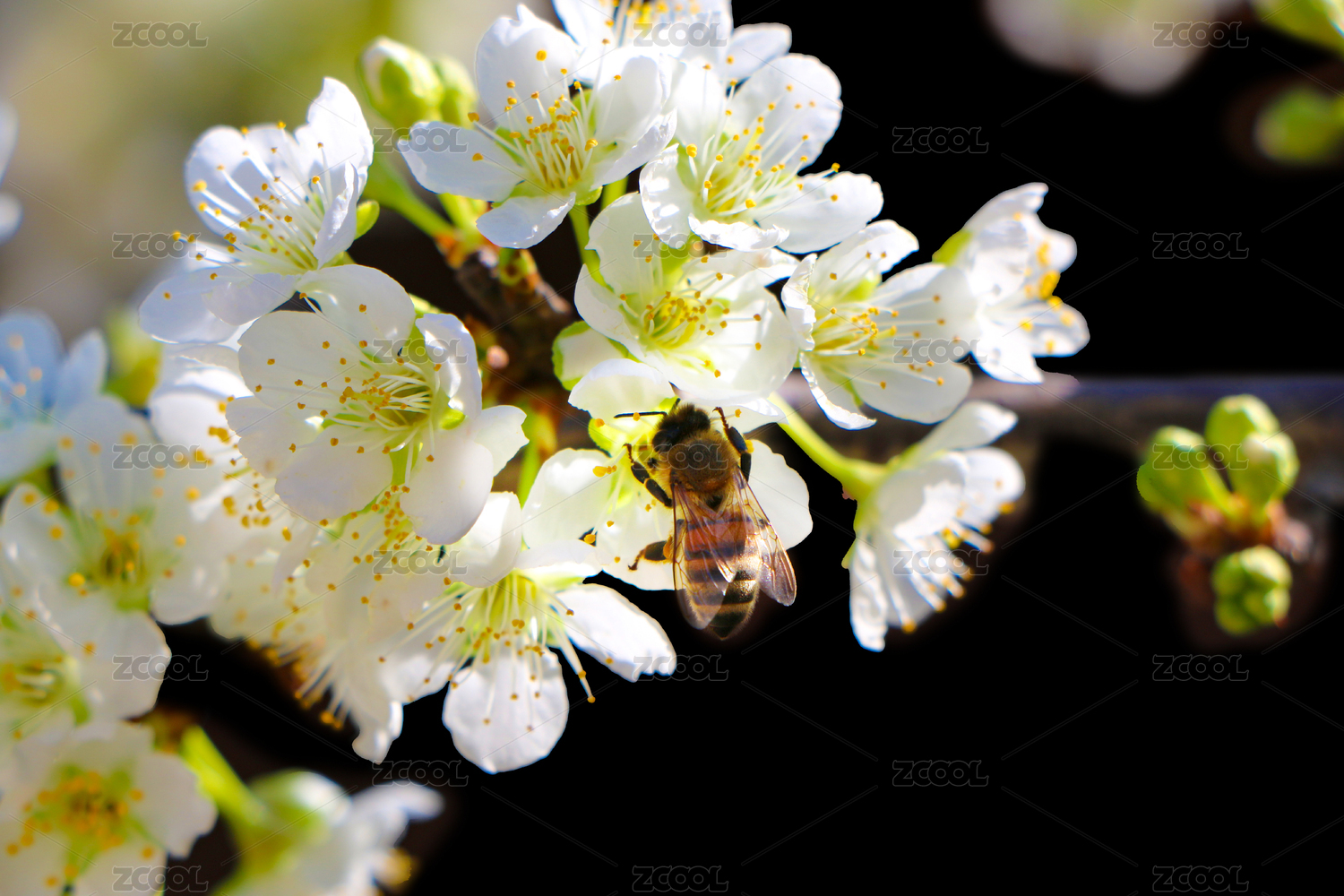 初春時節(jié)忙碌采李子花花粉的蜜蜂