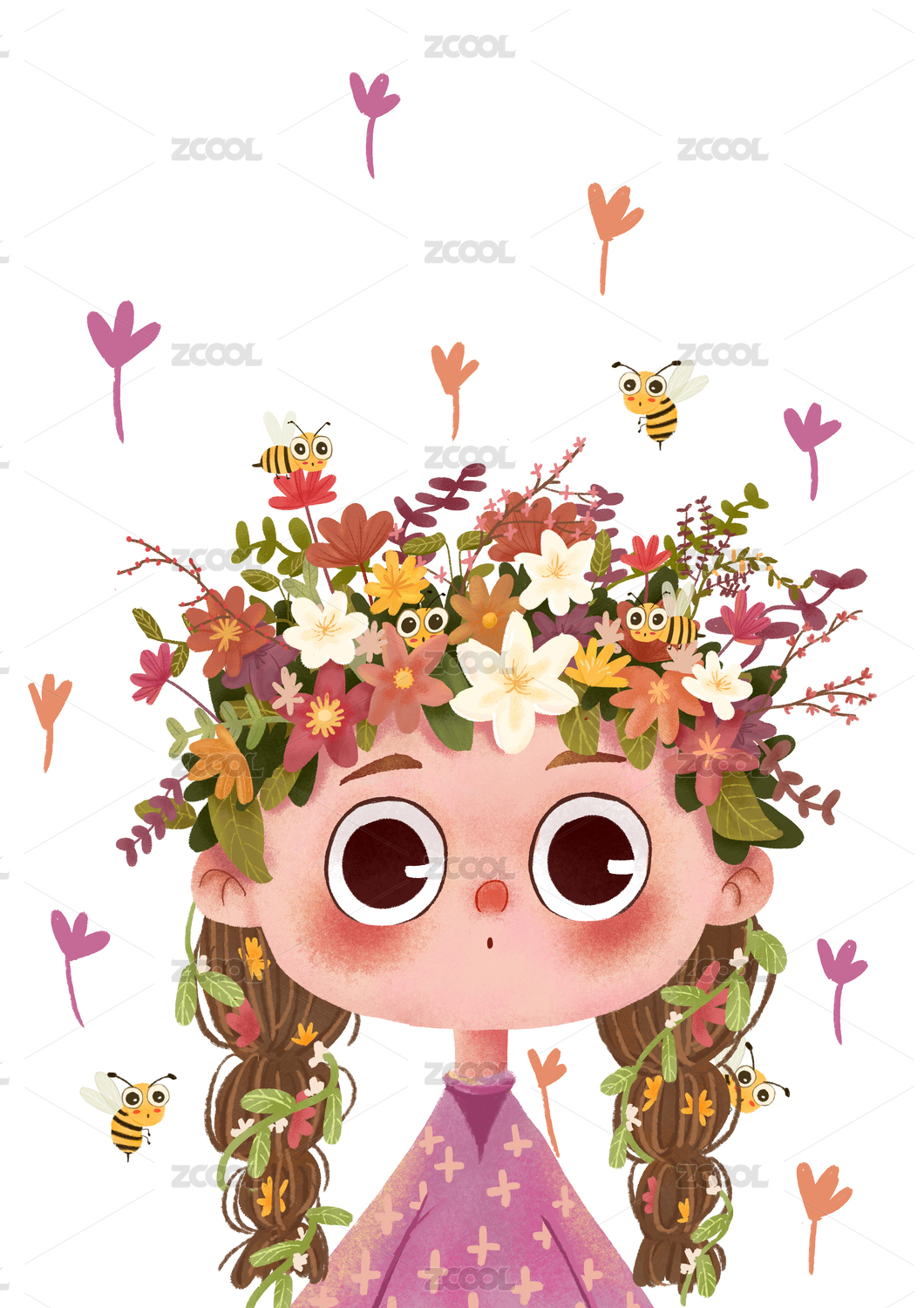 頭上有花有蜜蜂的小女孩頭像