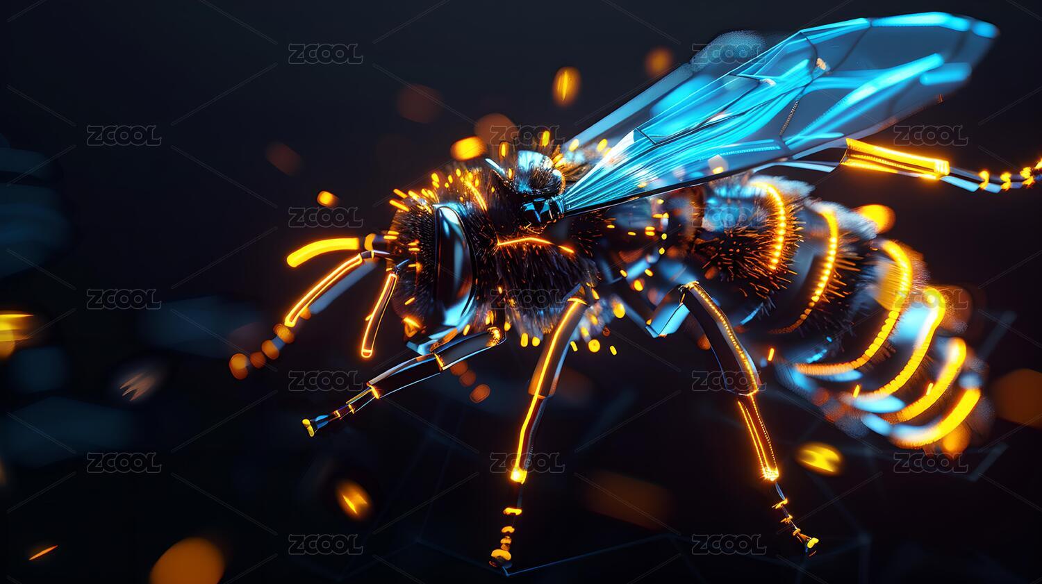 賽博朋克動物蜜蜂發(fā)光科技感未來科幻虛構