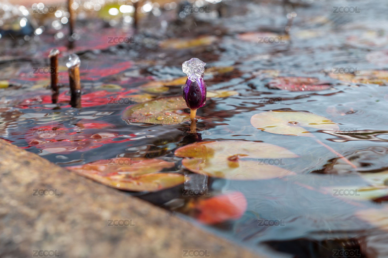 寺廟水池里正在曬太陽(yáng)的烏龜特寫(xiě)