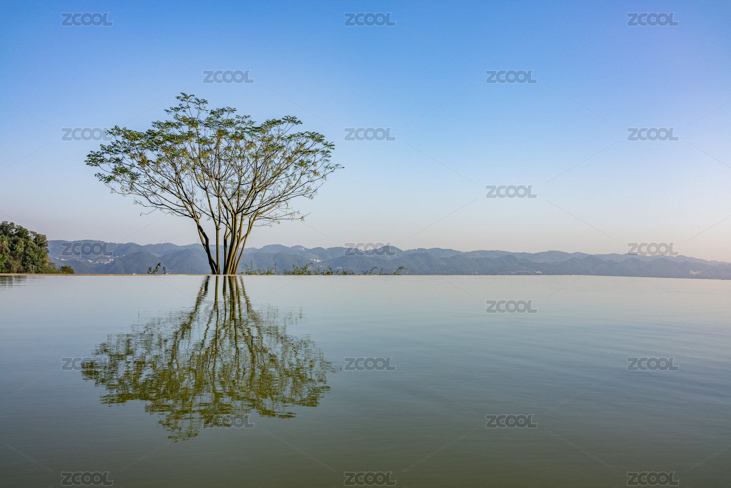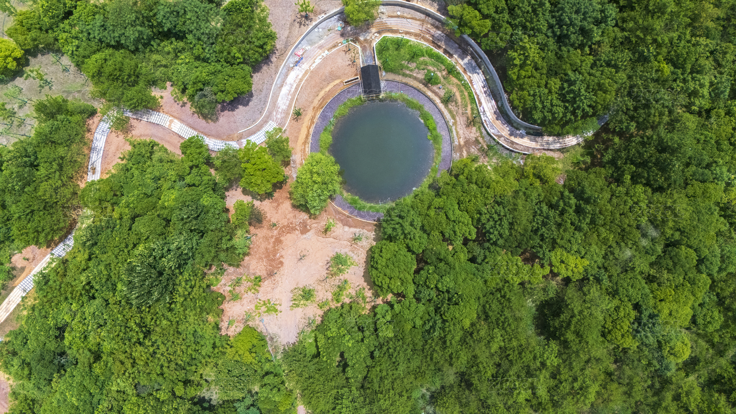 中國(guó)重慶西部新城寨山坪城市森林公園一水池倒影