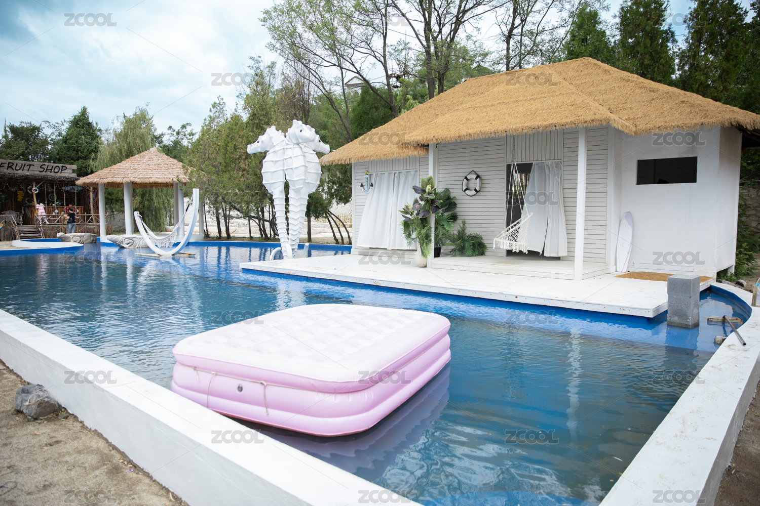 度假酒店房屋內(nèi)部建筑結(jié)構(gòu)水池和樓梯