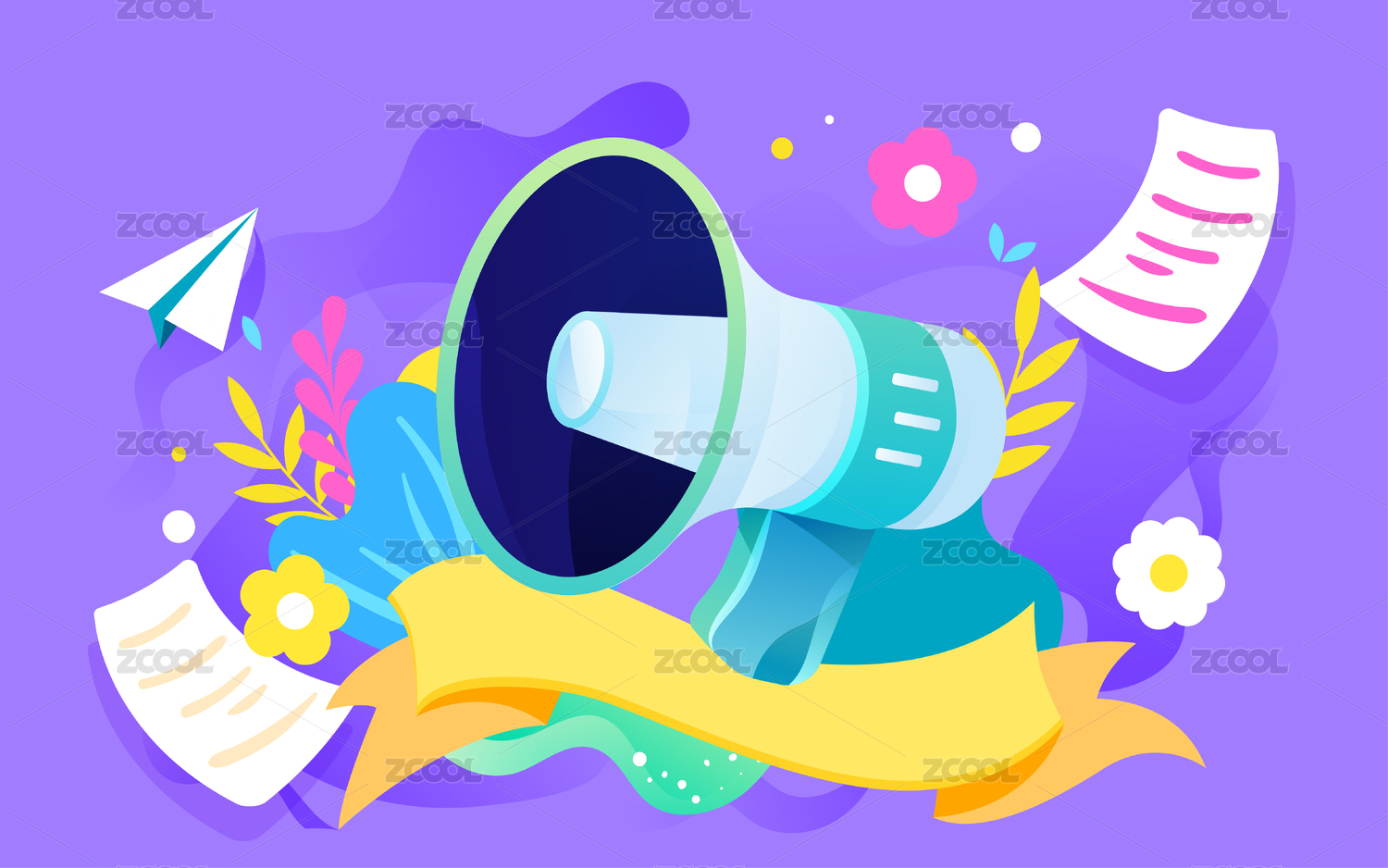 紫色背景中的手持?jǐn)U聲器喇叭活動促銷配圖