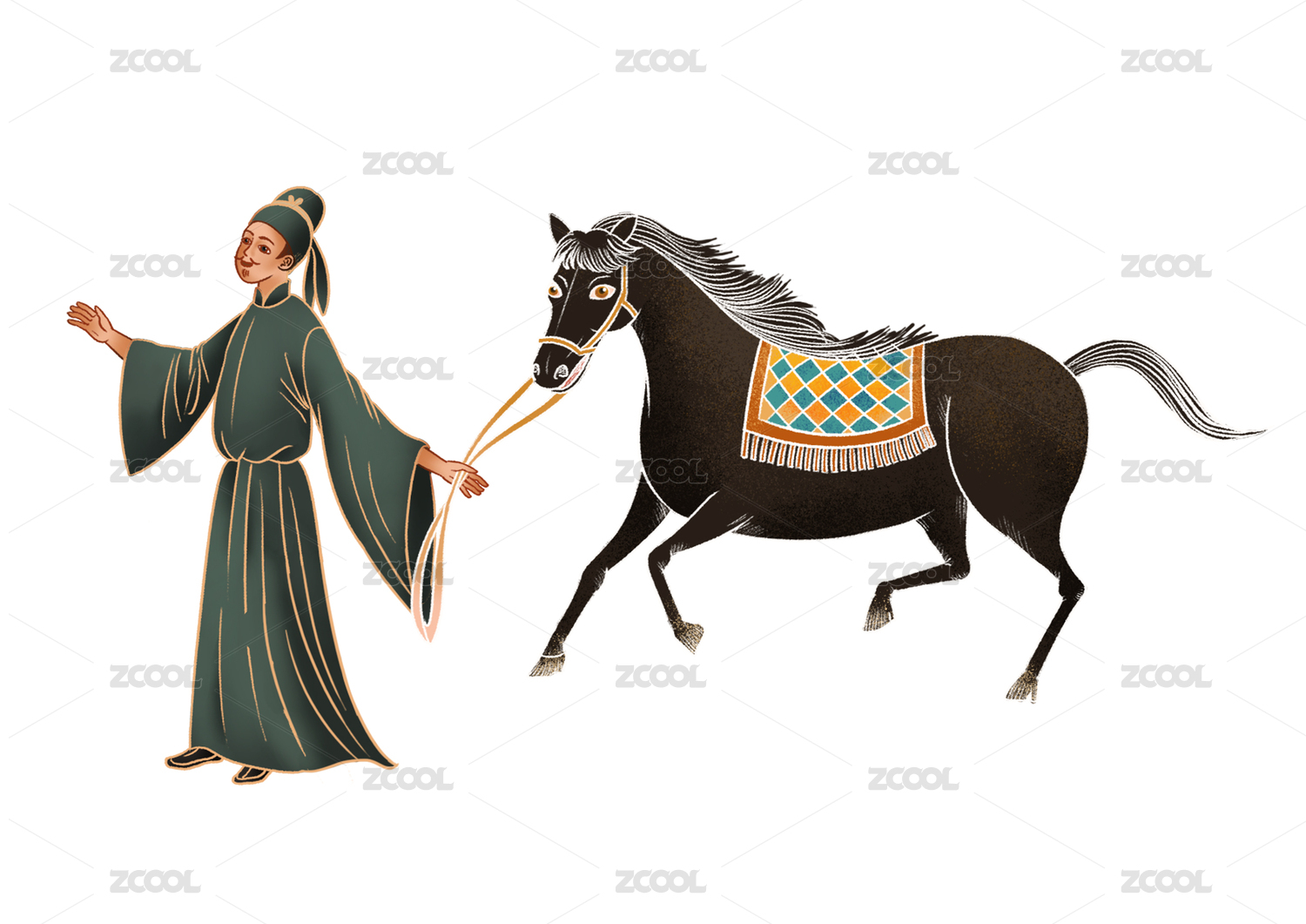 唐代牽著馬的詩人插畫免摳元素