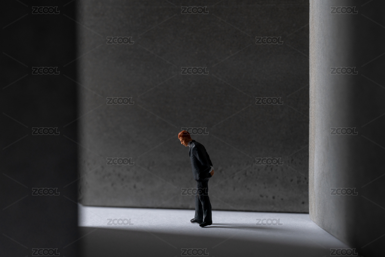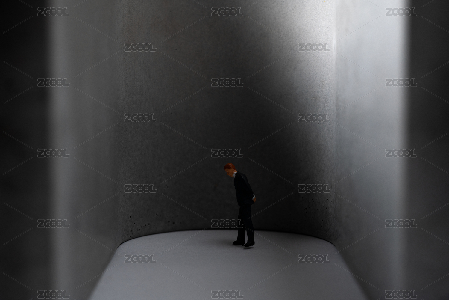 商務(wù)男士焦慮的站在暗調(diào)的背景中微縮創(chuàng)意