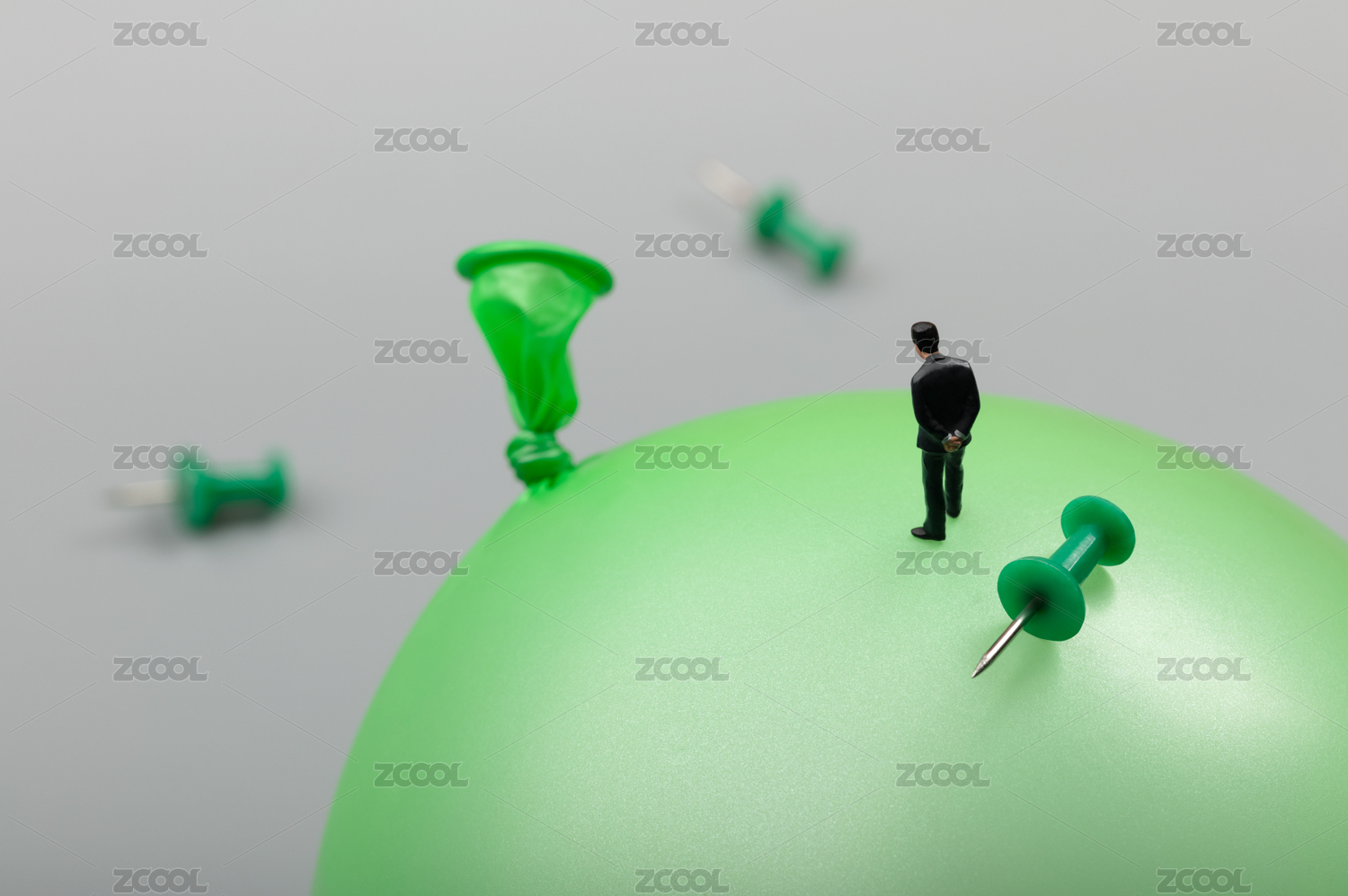 使用工字釘試圖戳爆氣球釋放壓力的焦慮男性