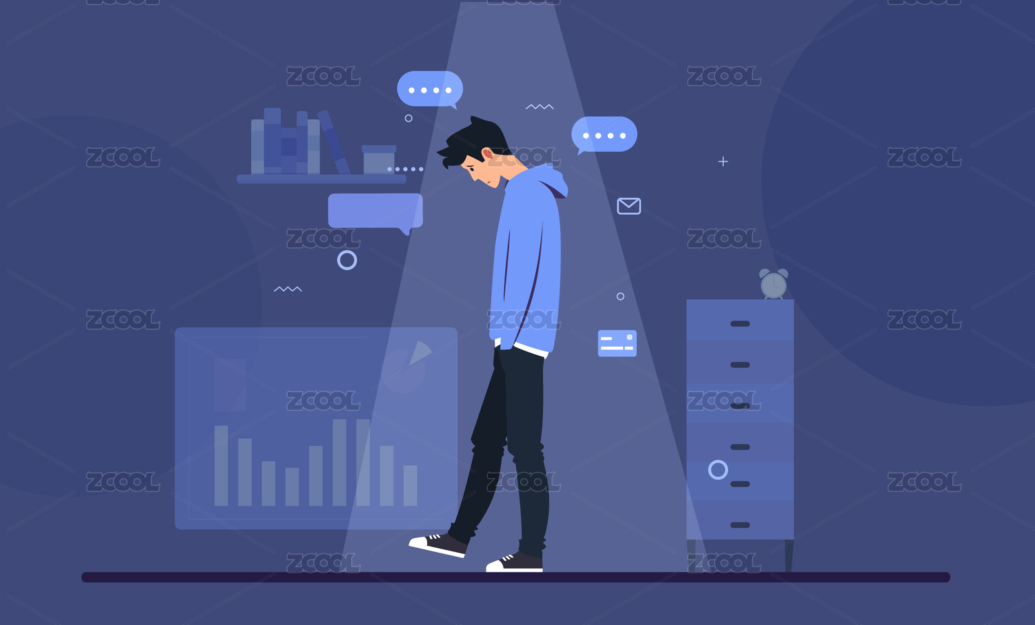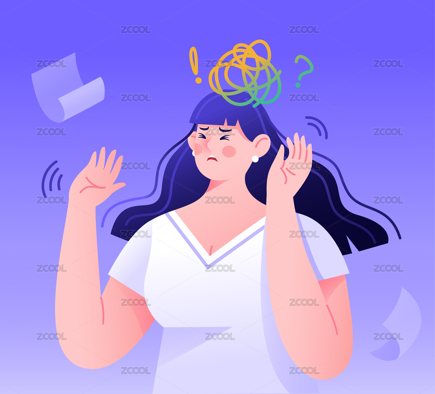 患有精神問題的焦慮沮喪女性矢量平面插畫