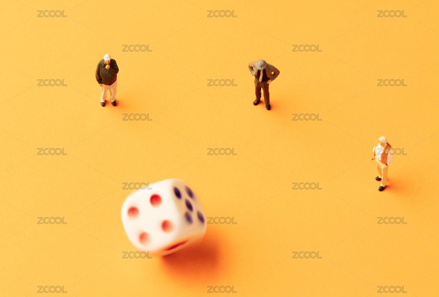 三個人圍著一個旋轉的骰子