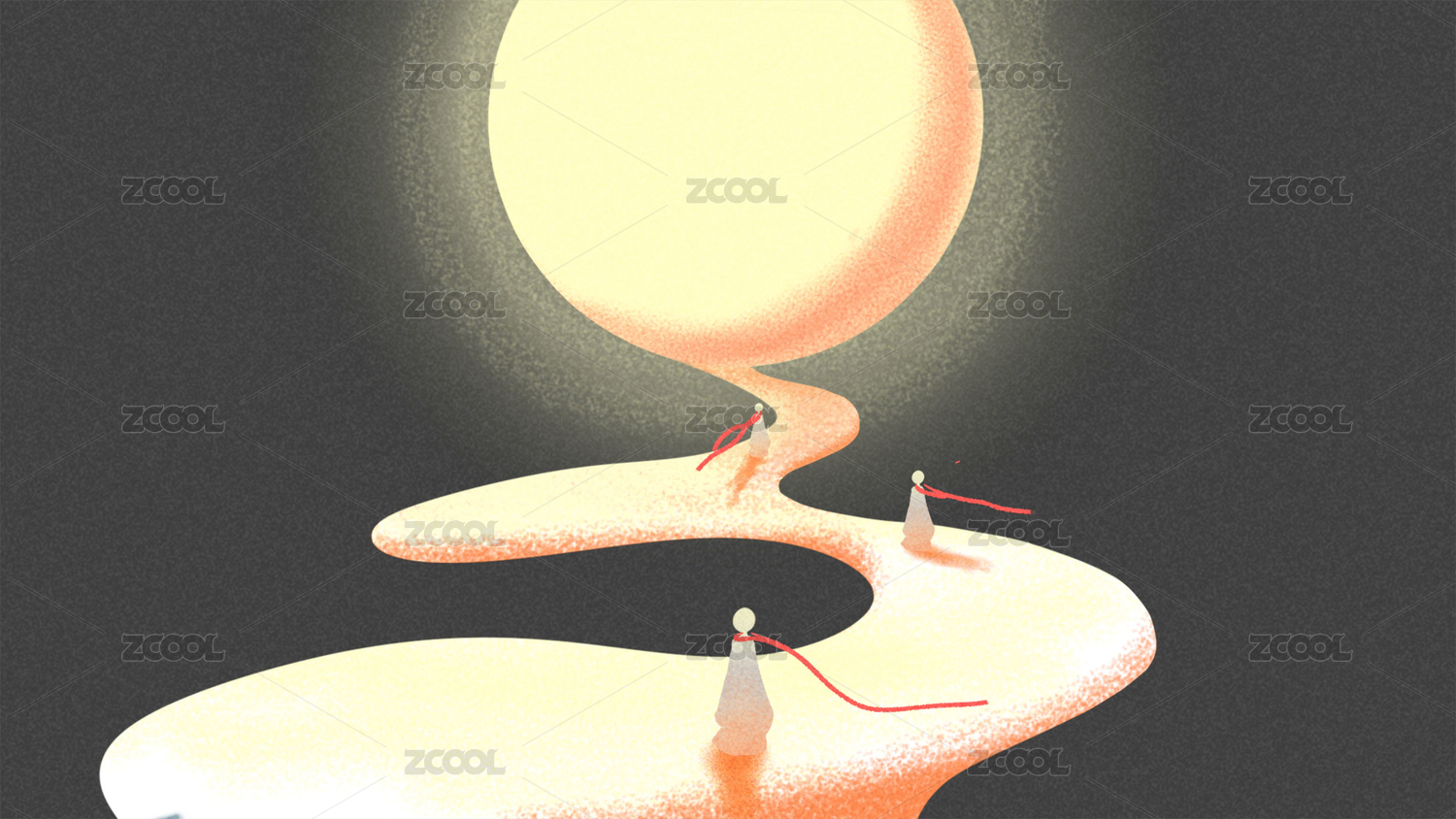 向路盡頭的光走的三個人,簡約內涵抽象插畫