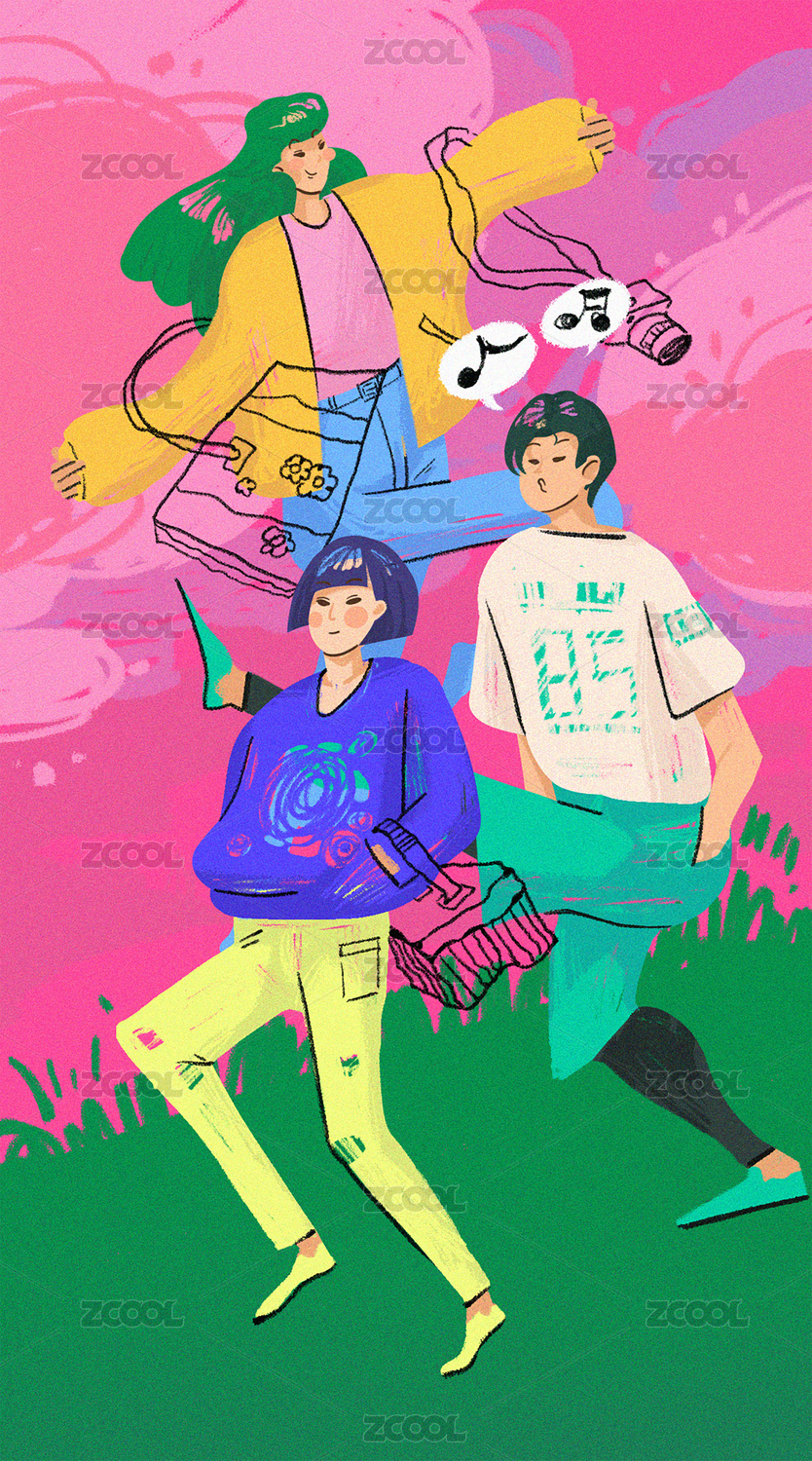 春天三個人出去游玩