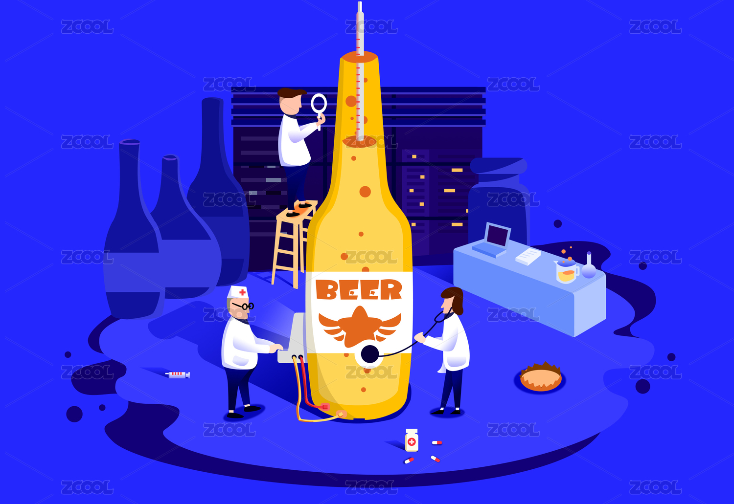 在封閉的實驗室里三個人檢測啤酒的質量