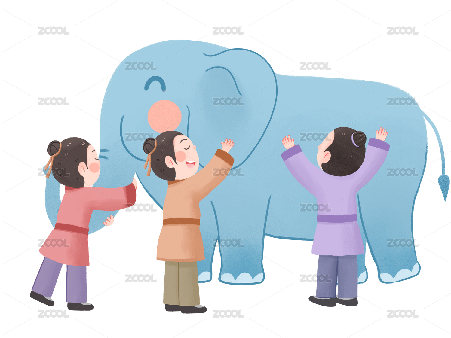 成語故事盲人摸象古裝人物盲人三個人摸著