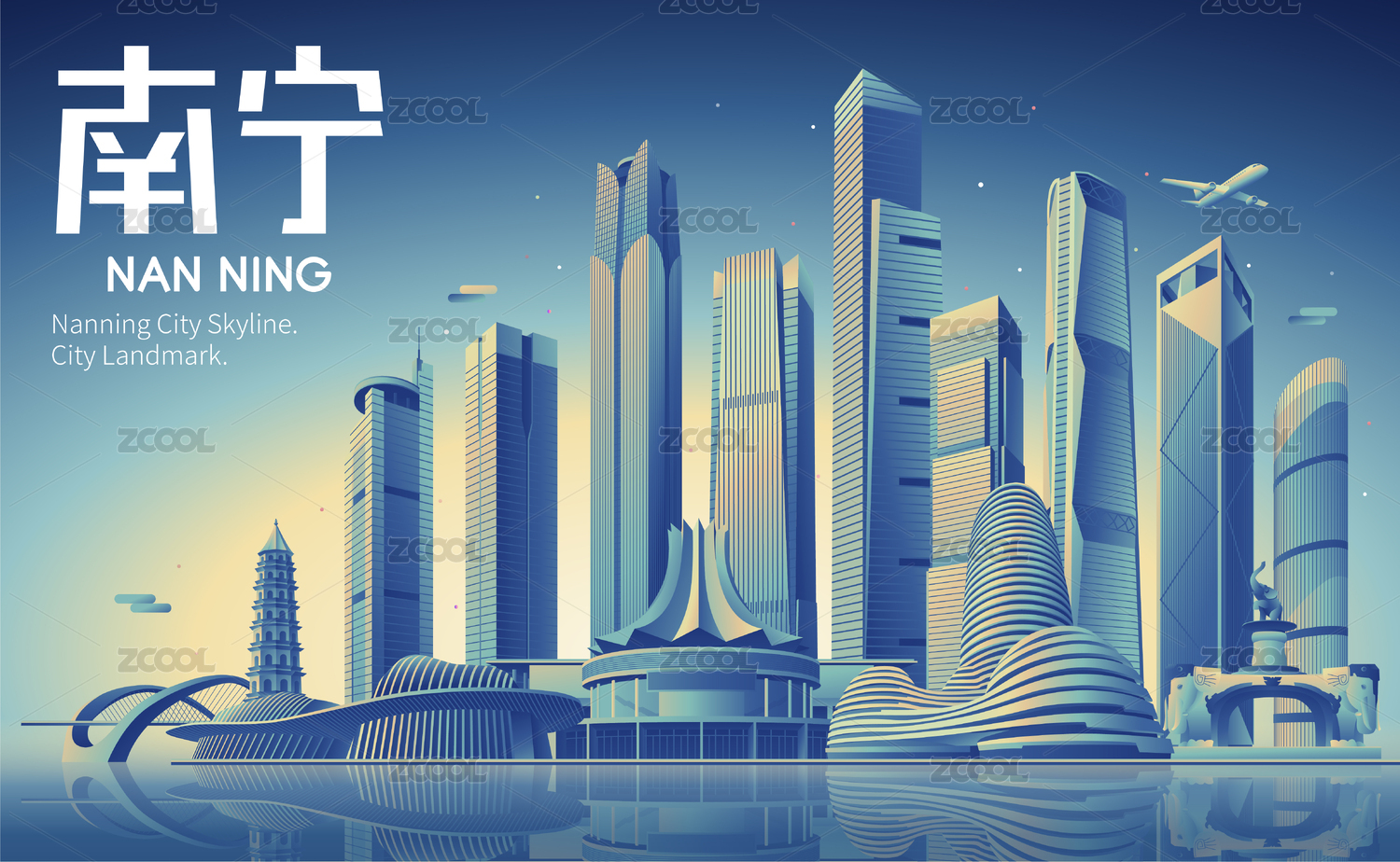 南寧城市建筑群矢量插畫