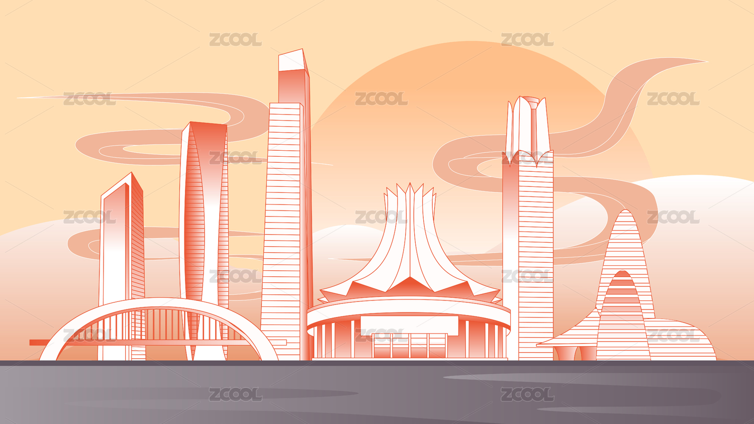 廣西南寧城市建筑群矢量插畫
