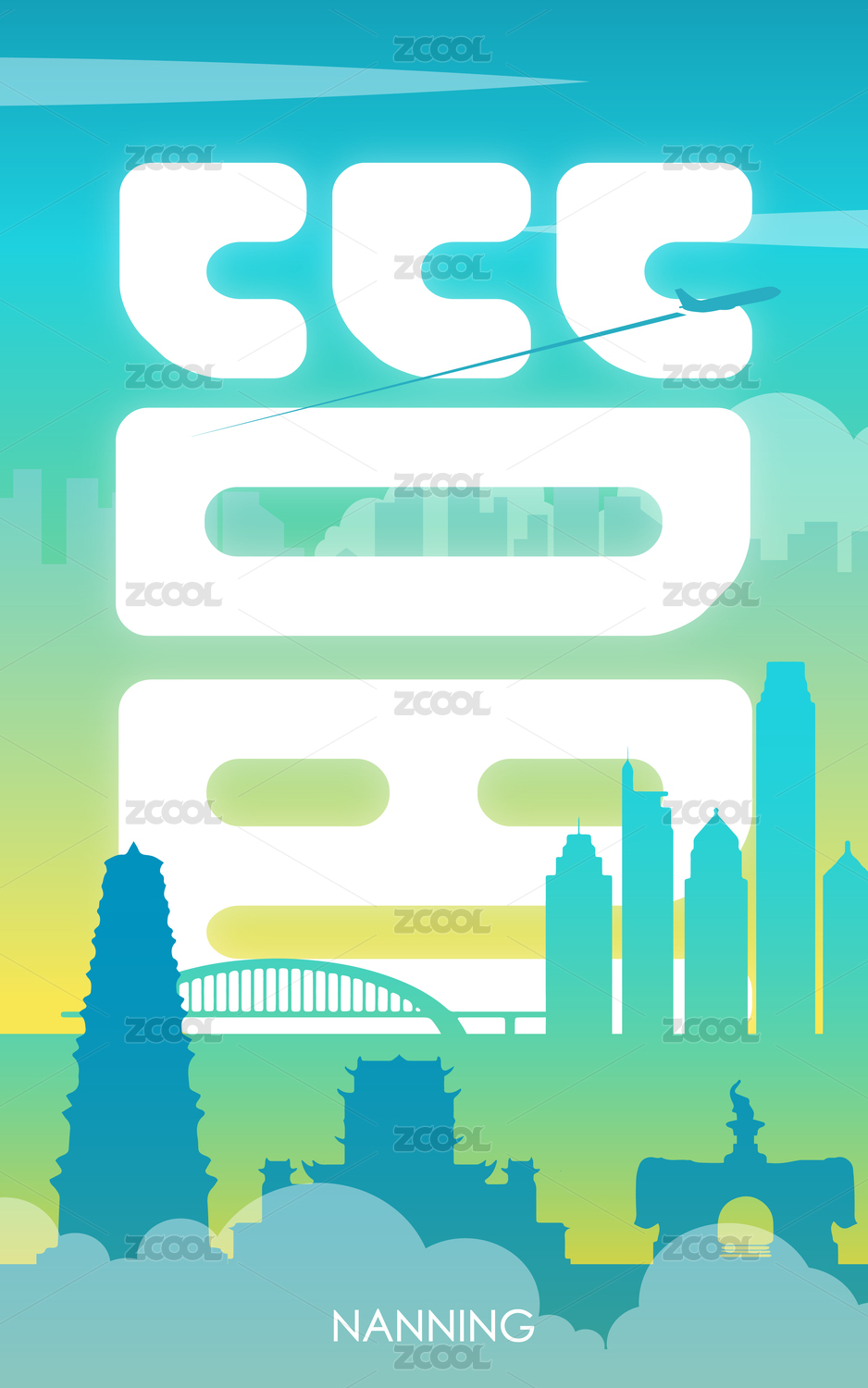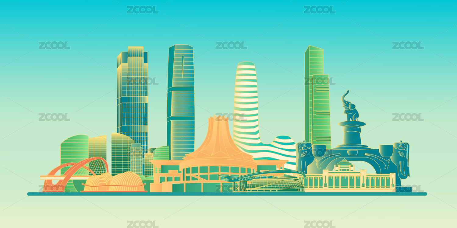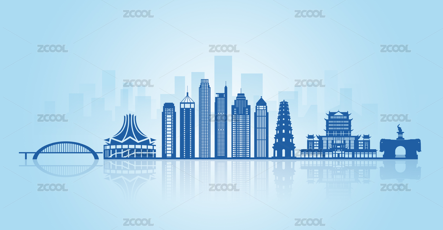 廣西南寧城市建筑天際線矢量插畫海報