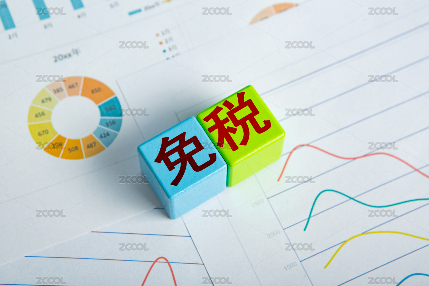 金融辦公用品上放著文字積木免稅