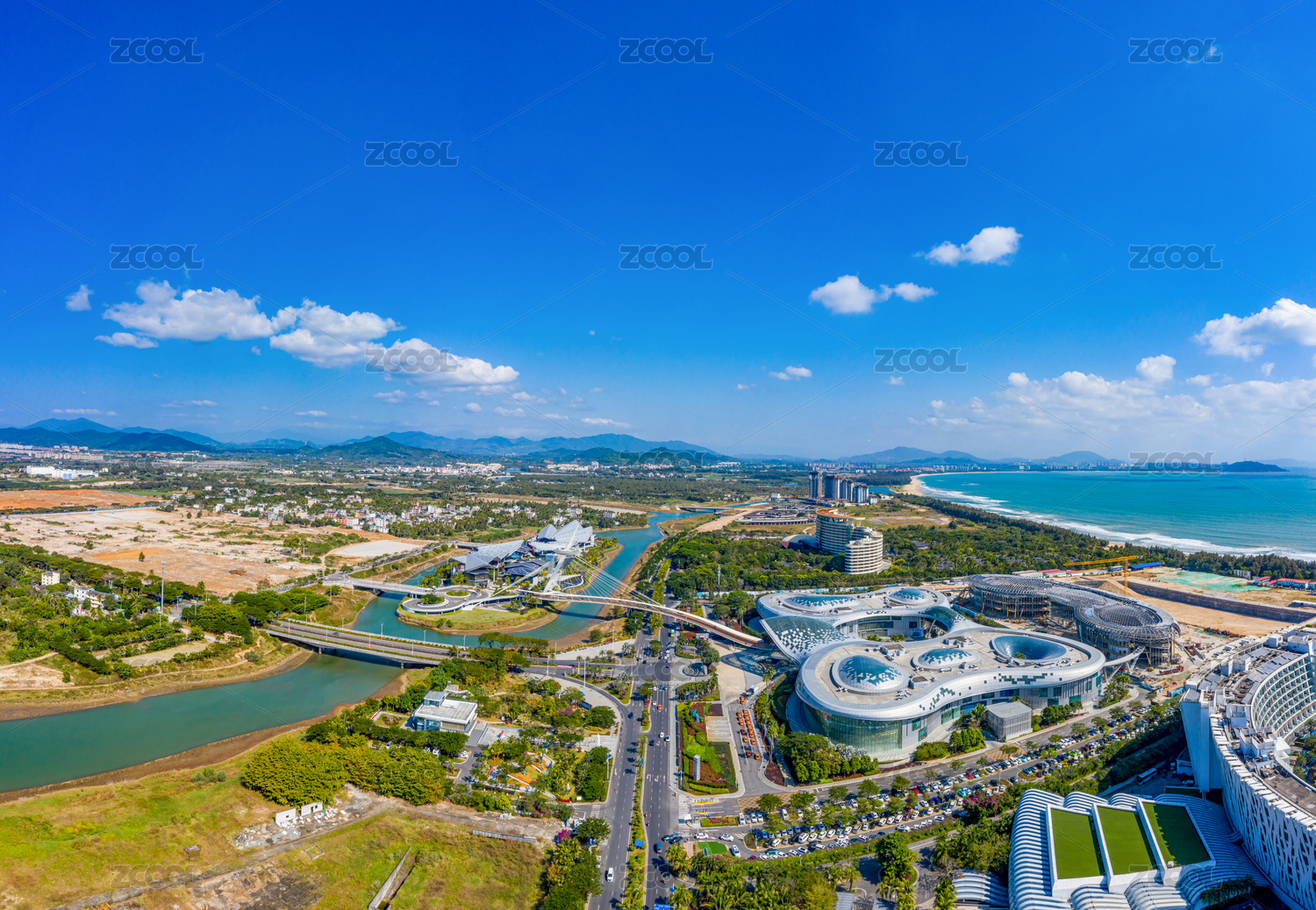 航拍海南三亞國(guó)際免稅城海棠灣免稅購(gòu)物中心