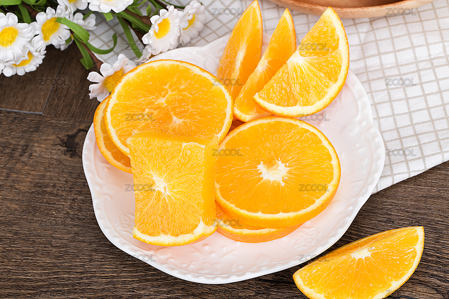 俯視桌子上的愛媛橙子切片