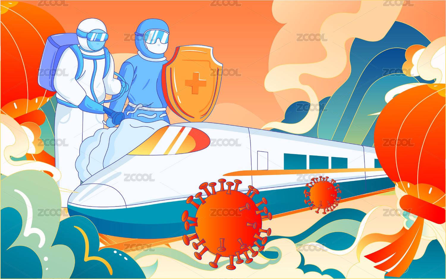春節(jié)回家過(guò)年春運(yùn)防疫插畫疫情防護(hù)國(guó)潮海報(bào)