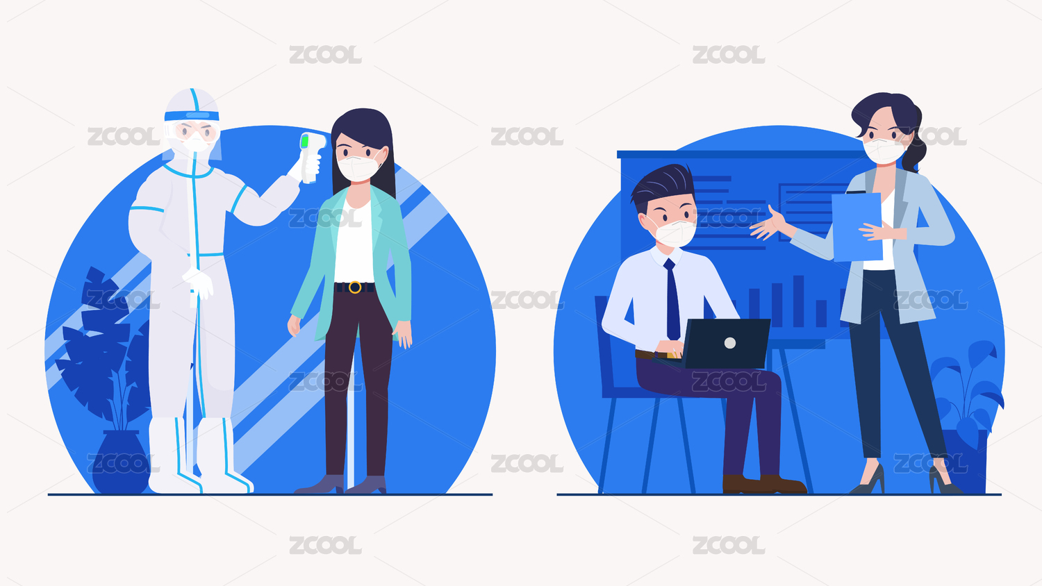 防疫插畫小知識(shí) 公司體溫測(cè)量會(huì)議佩戴口罩