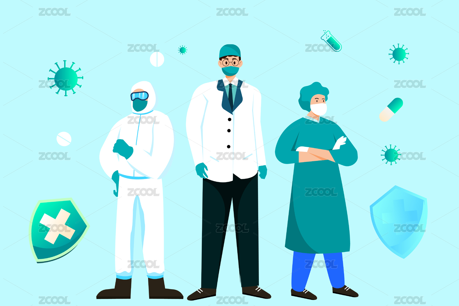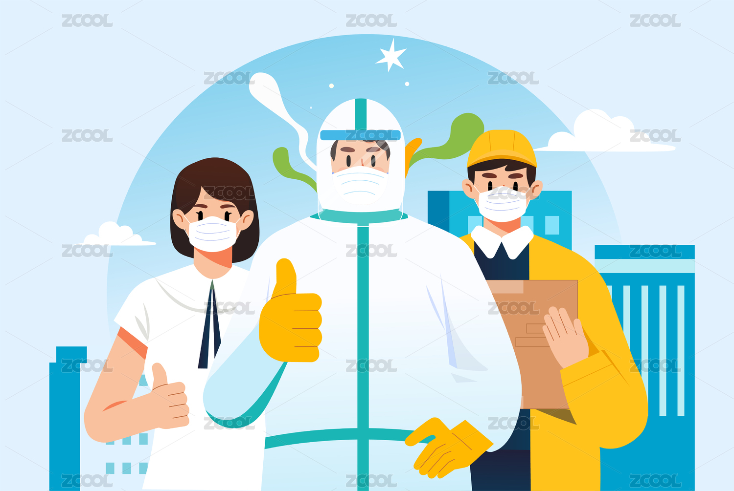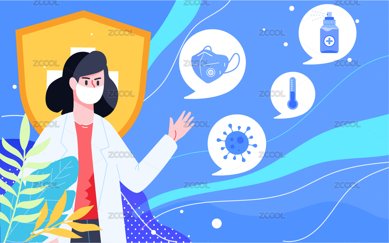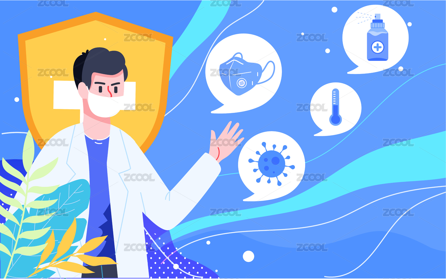 新冠疫情安全防疫插畫醫(yī)生醫(yī)療健康防護(hù)海報(bào)