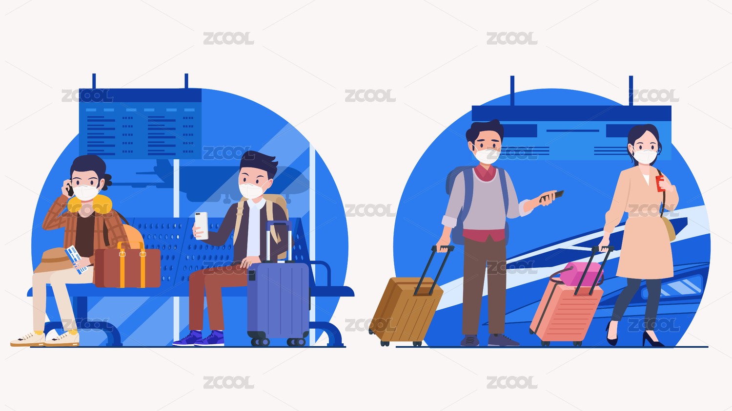 戴口罩出行旅行疫情游玩旅游返程防疫插畫