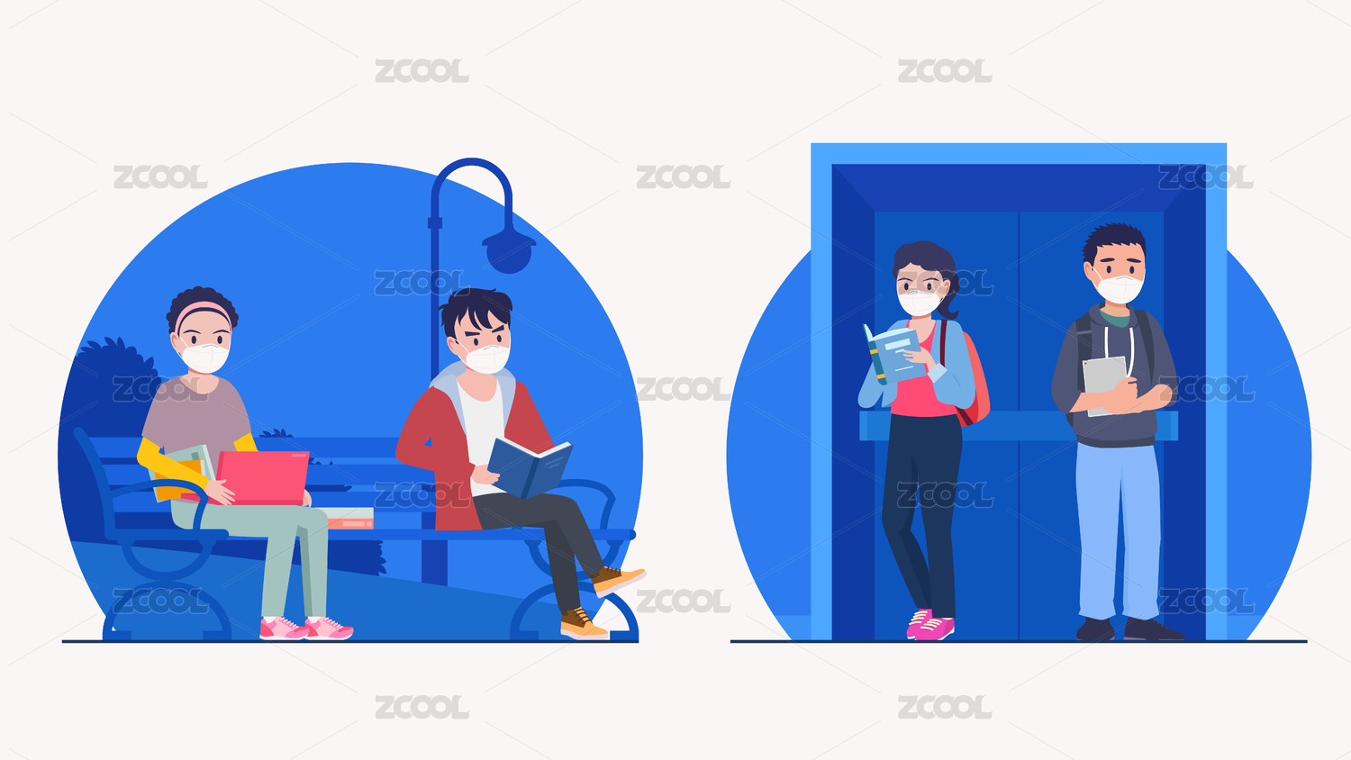 防疫插畫小知識(shí) 公園座椅電梯保持間距