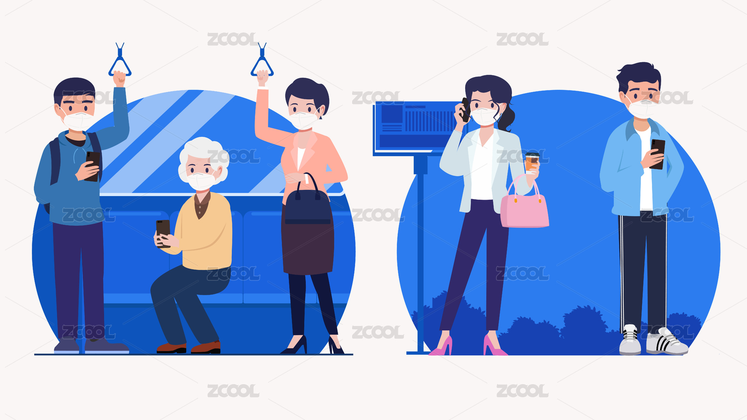 防疫插畫小知識(shí) 地鐵車站佩戴口罩