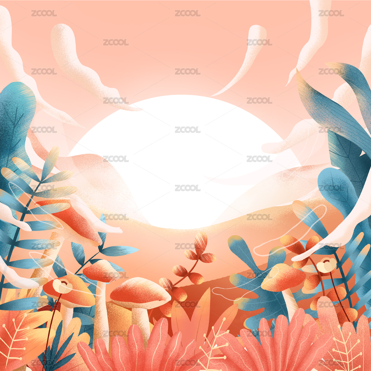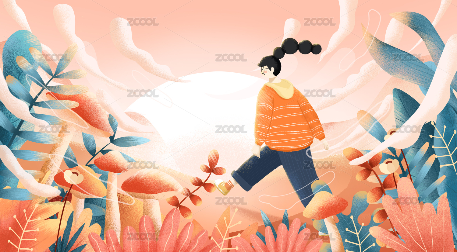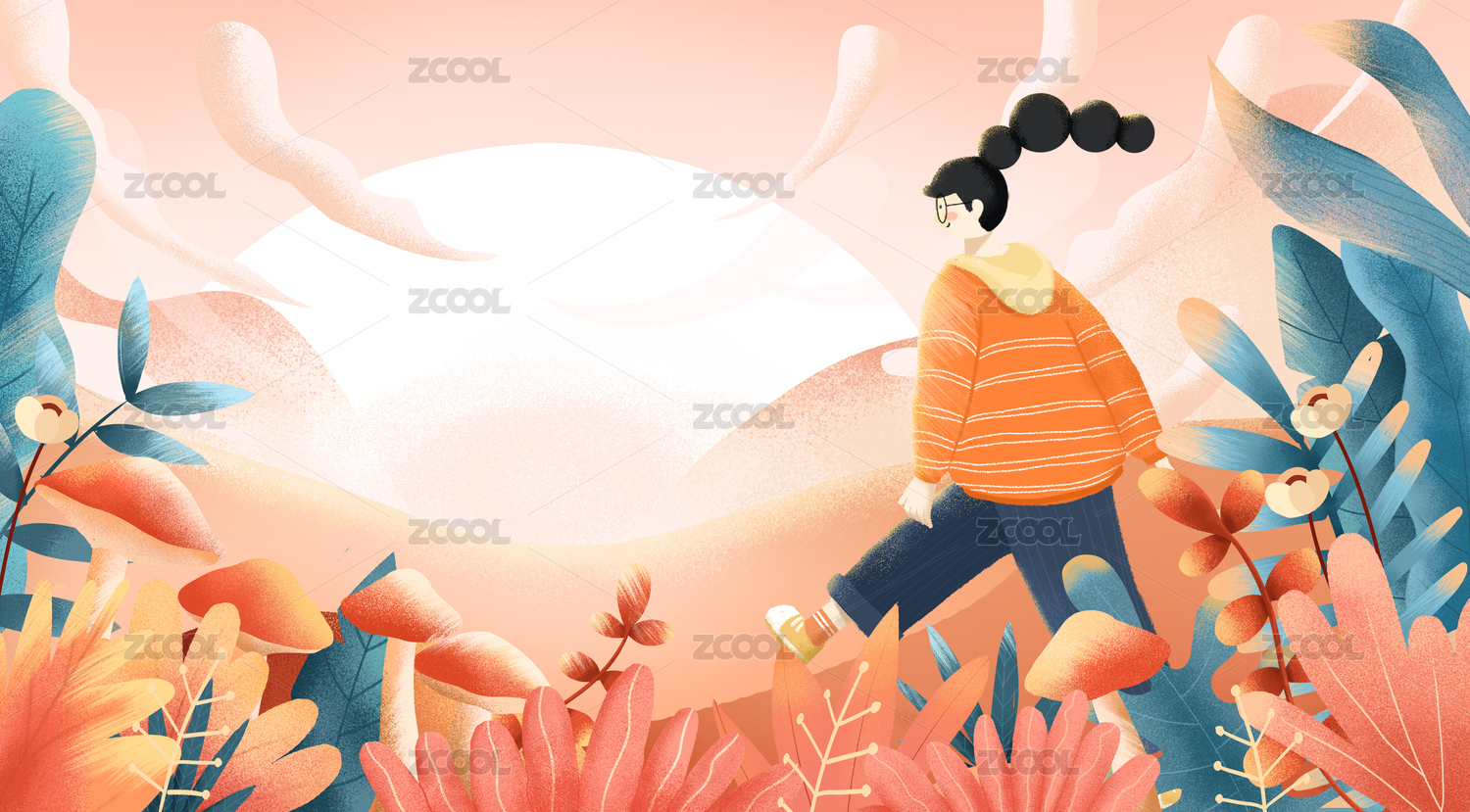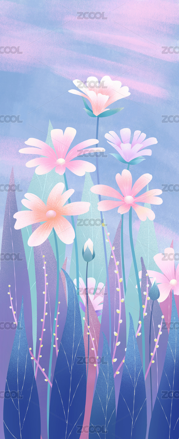 手繪卡通花草插畫