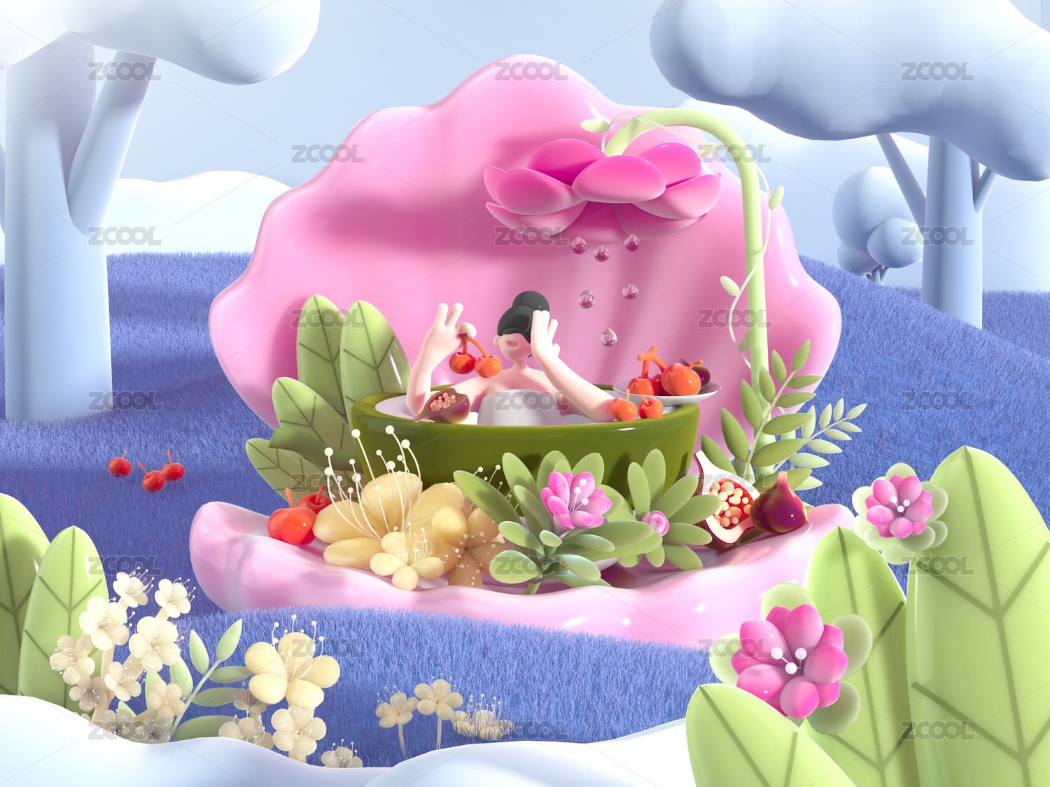 3d春日清新花草
