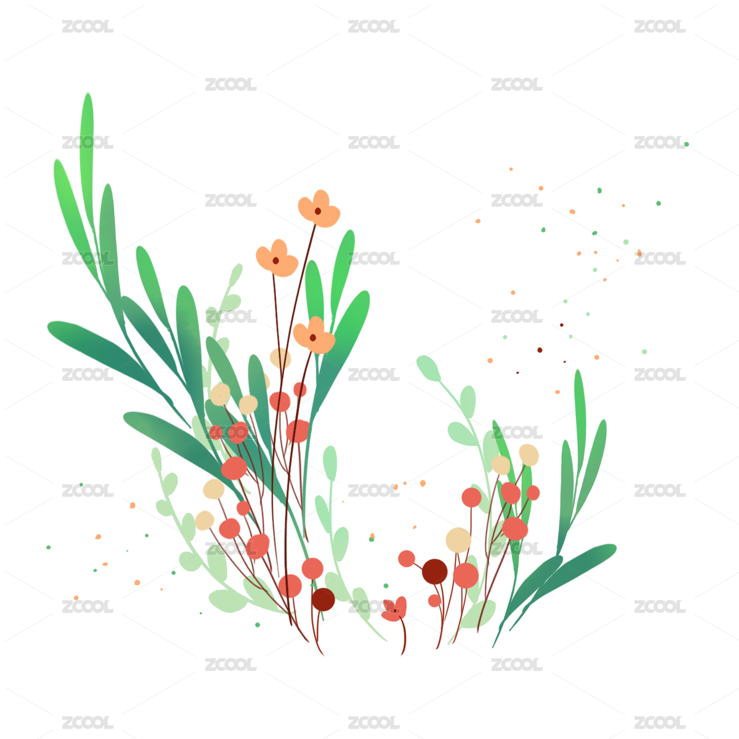 水彩花草素材