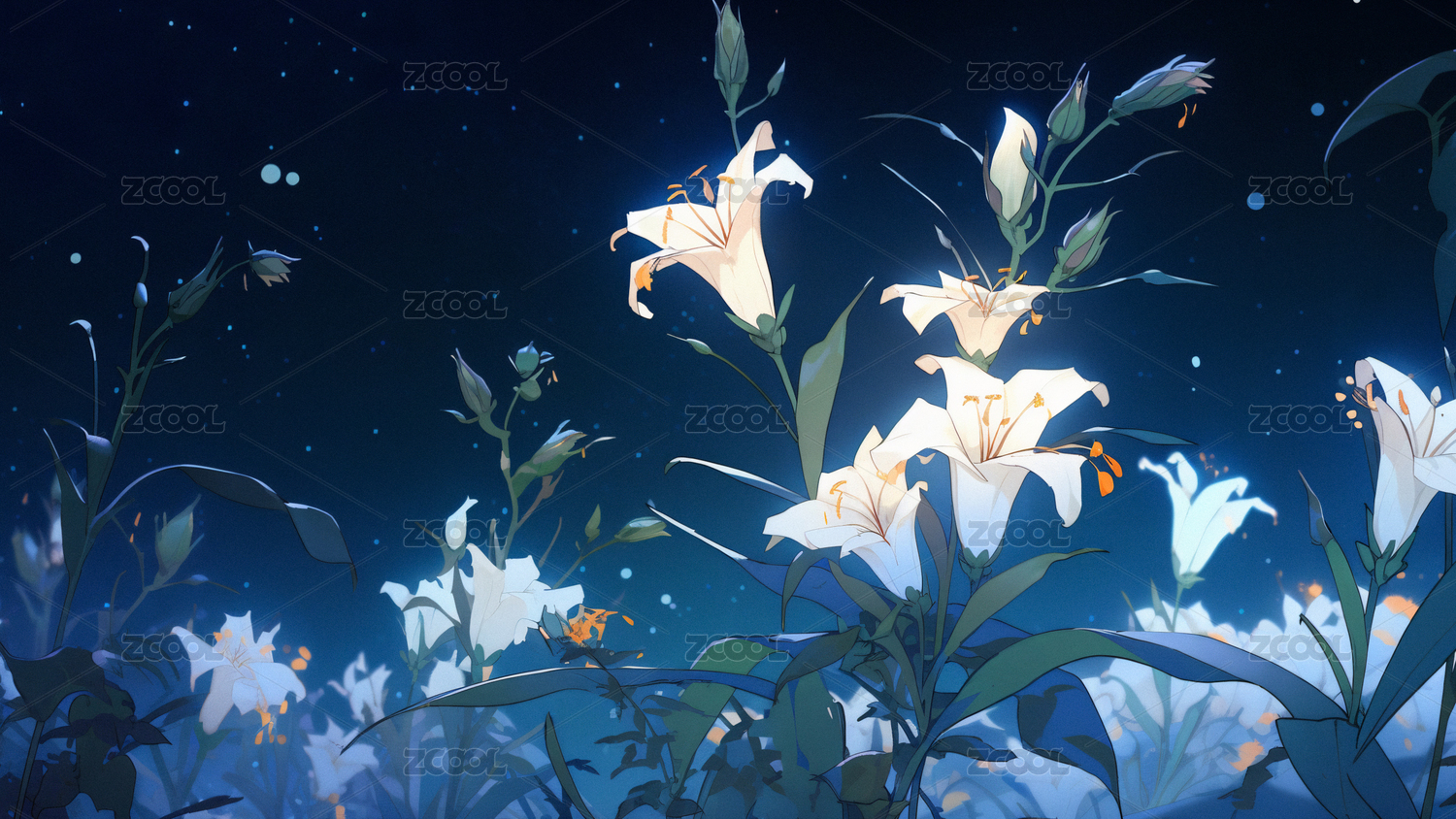 夜景下的花草