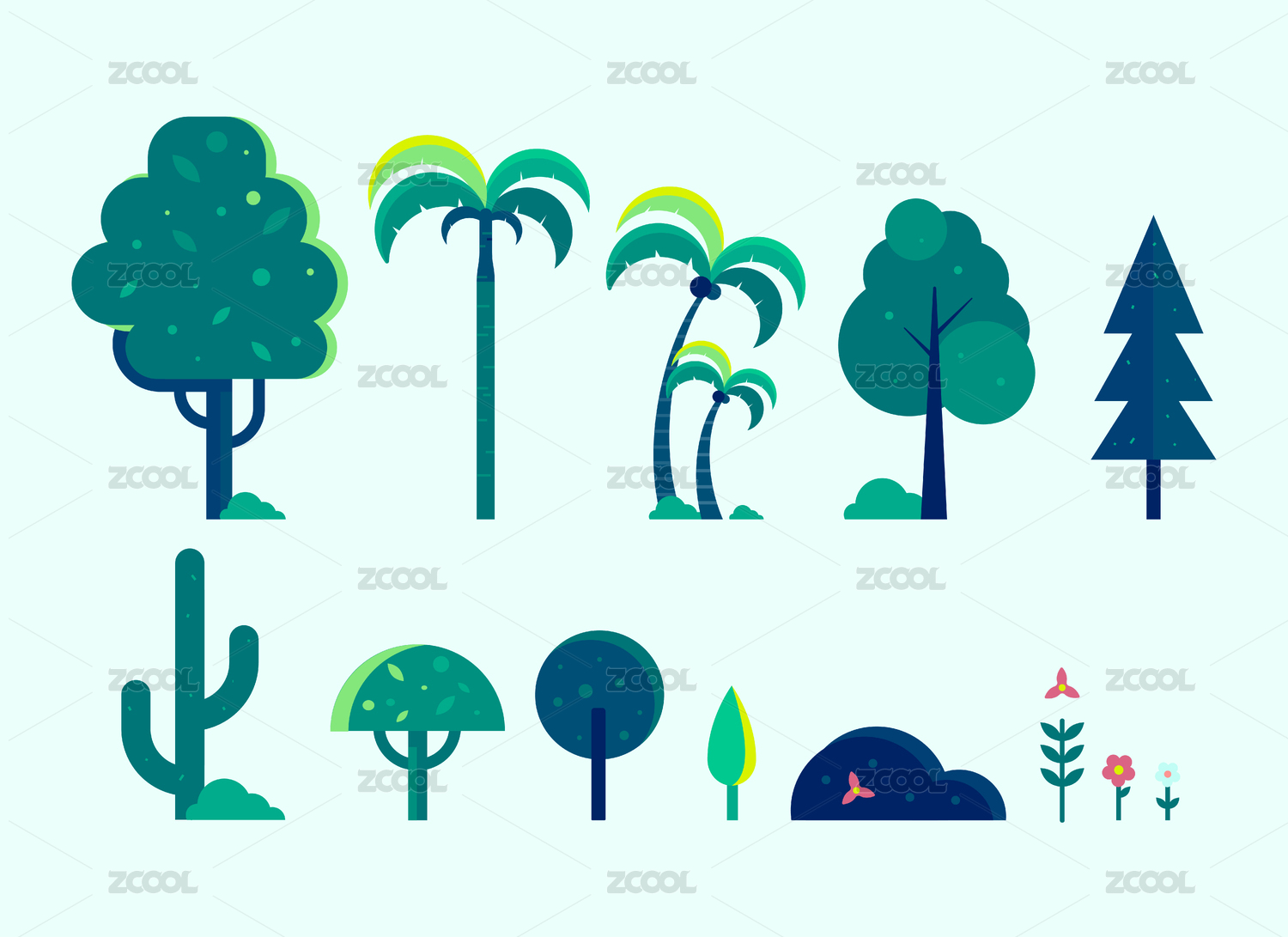 扁平花草樹木集合