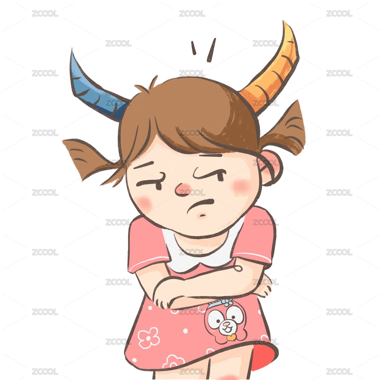 手繪Q版卡通穿背帶褲抱書(shū)開(kāi)心站立女孩插畫(huà)