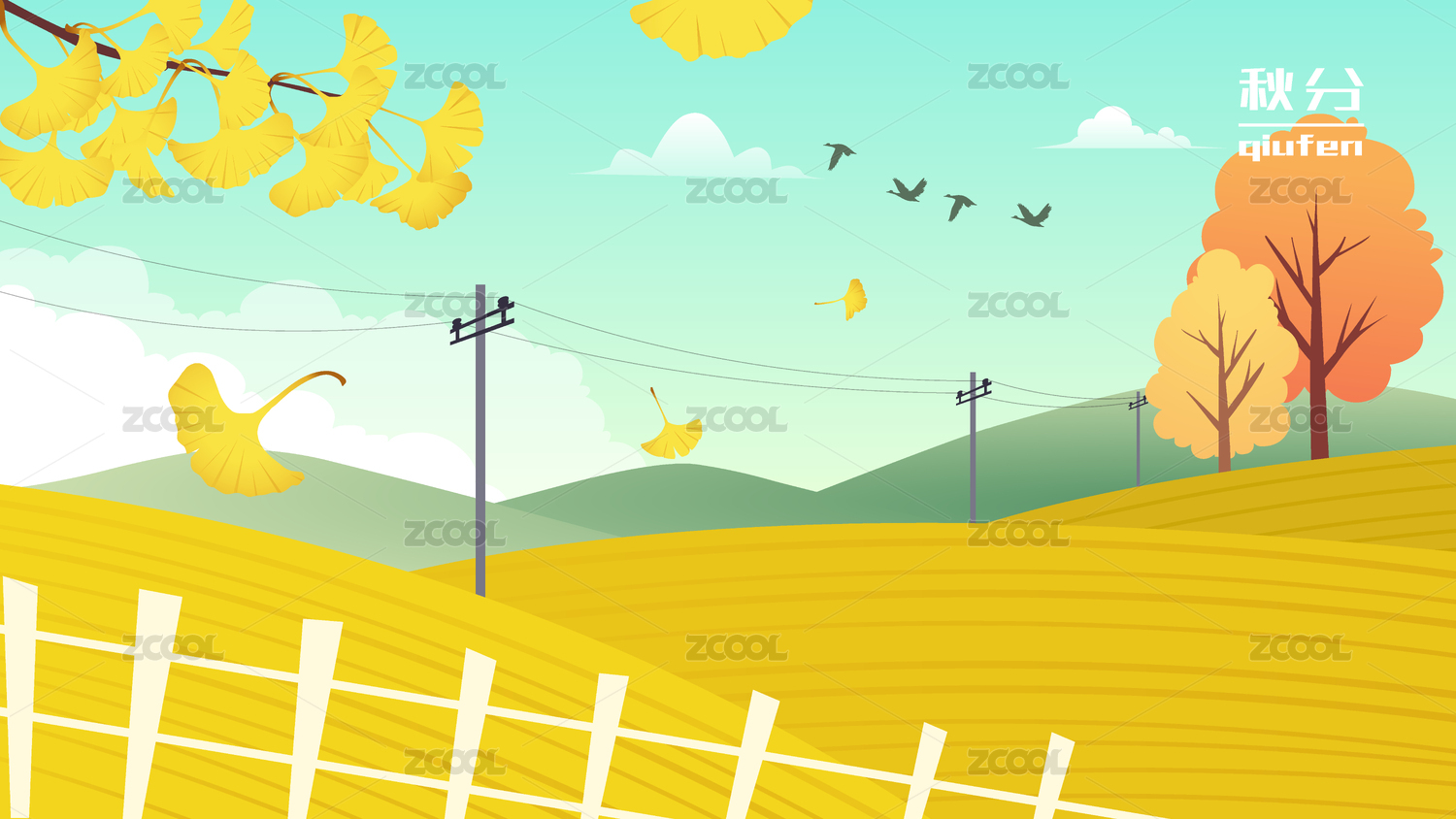 秋分時節(jié)銀杏葉田園風(fēng)景插畫