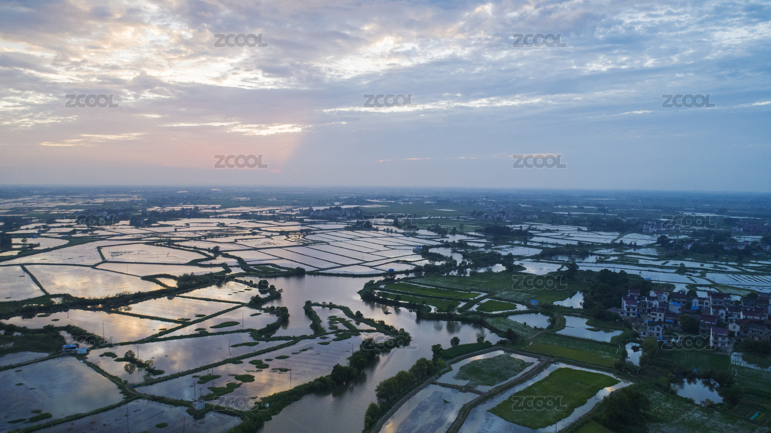 航拍中國安徽省郎溪縣現(xiàn)代農(nóng)業(yè)示范區(qū)夕陽下的田園風(fēng)光