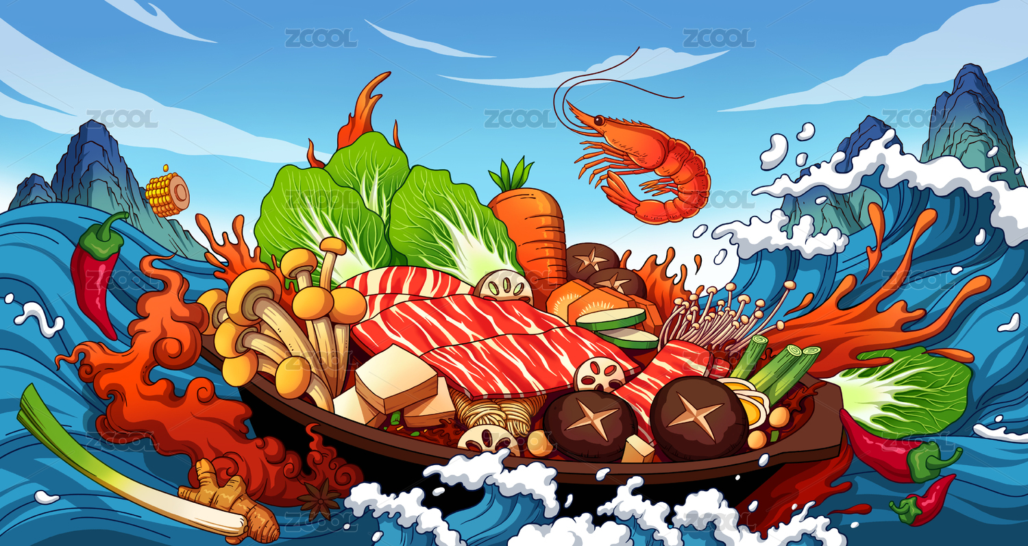 美食火鍋冒菜插畫