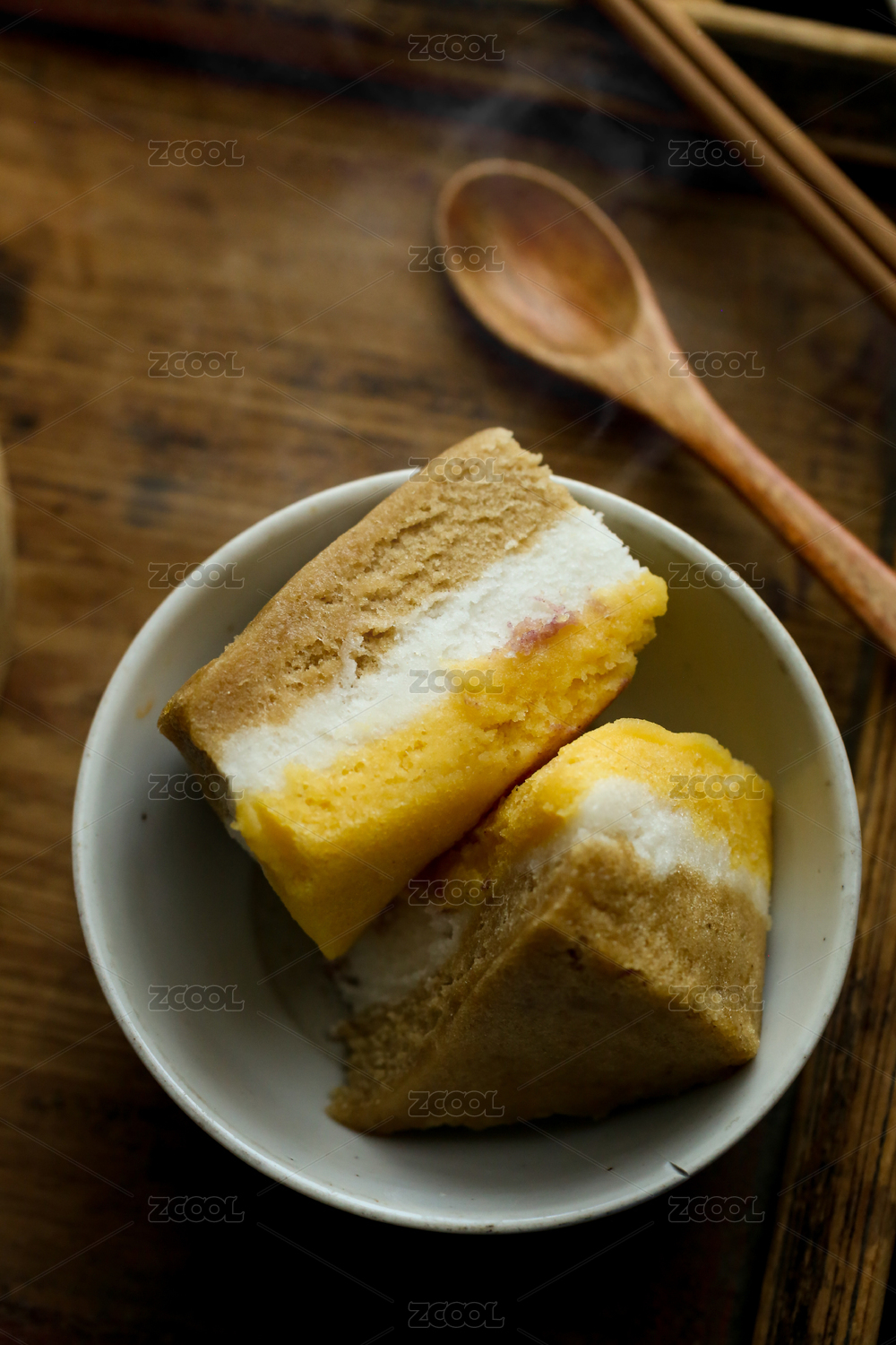 碗里有兩塊切好的年糕