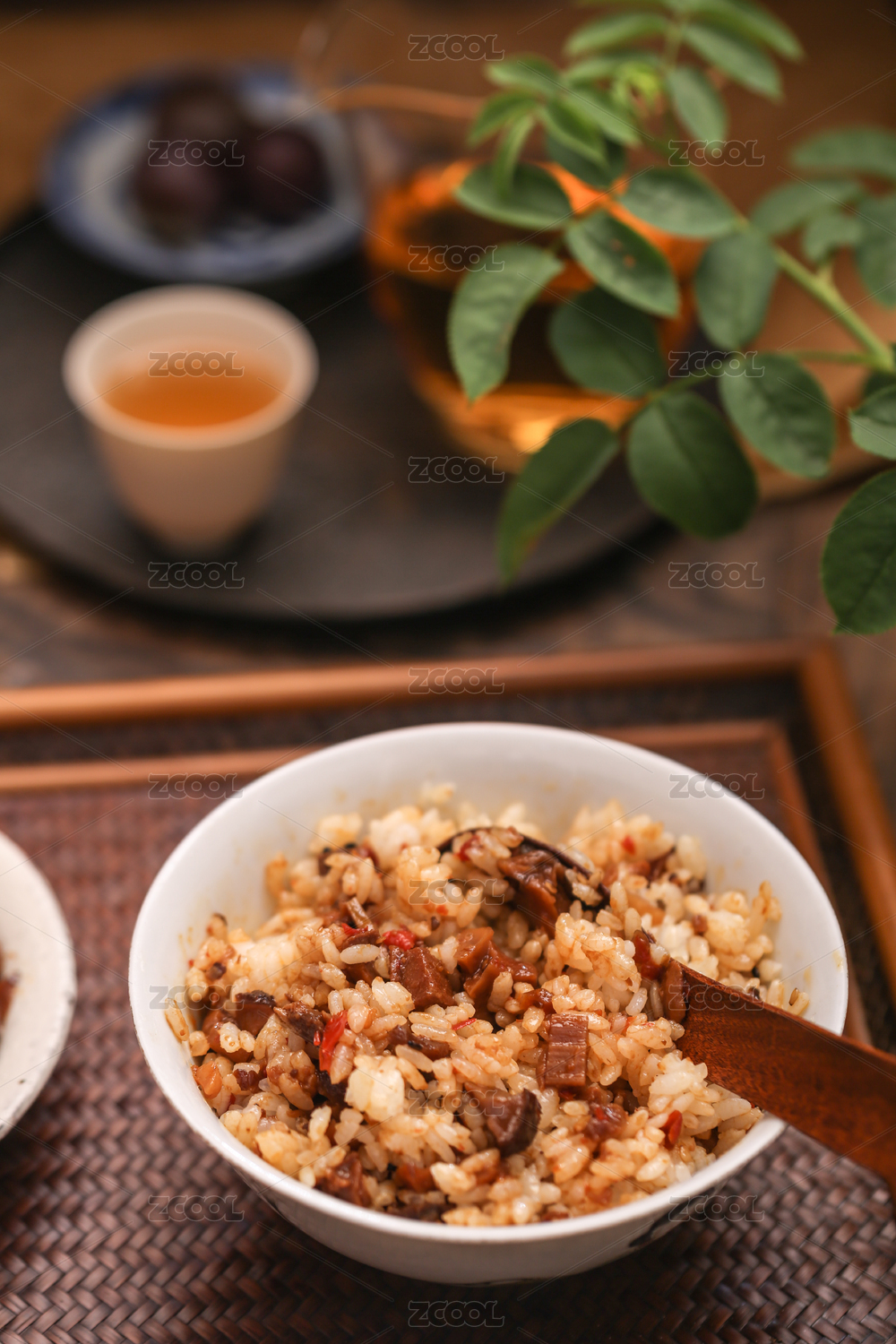 餐桌上一碗拌好的米飯