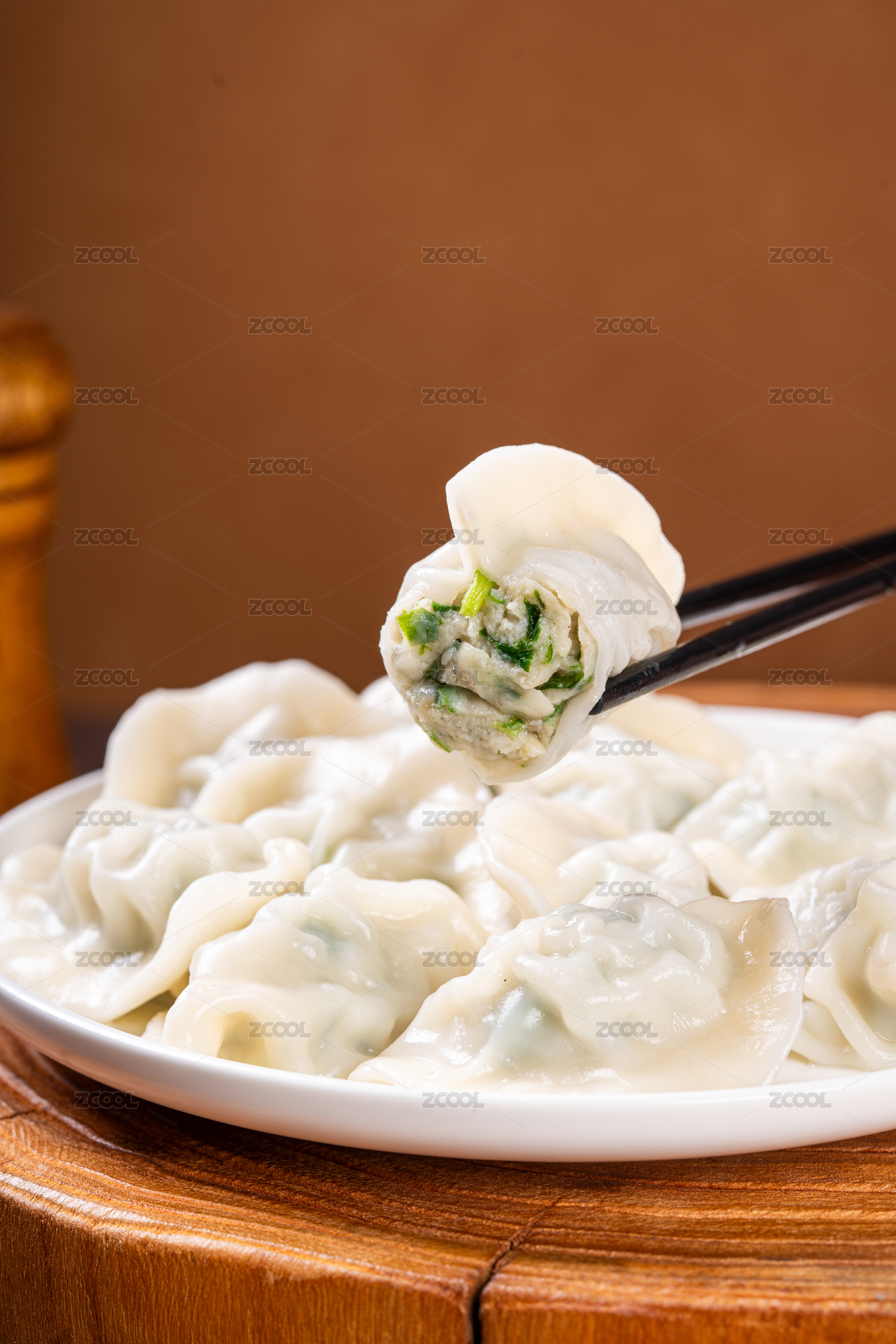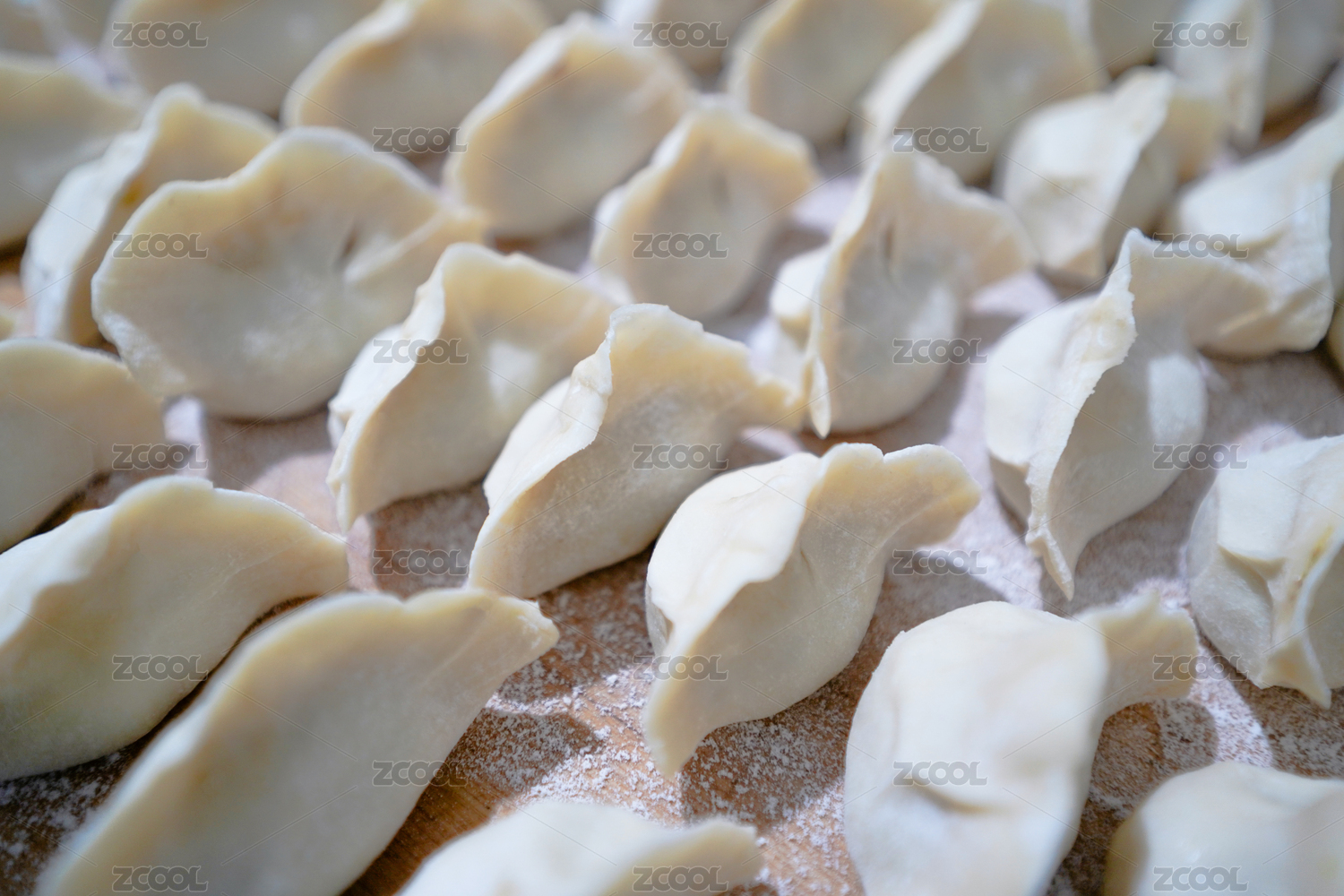 放在木板上的白色蔬菜餃子