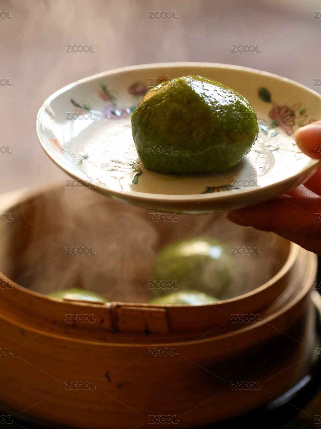 盤子里有一個(gè)熱乎乎的青團(tuán)