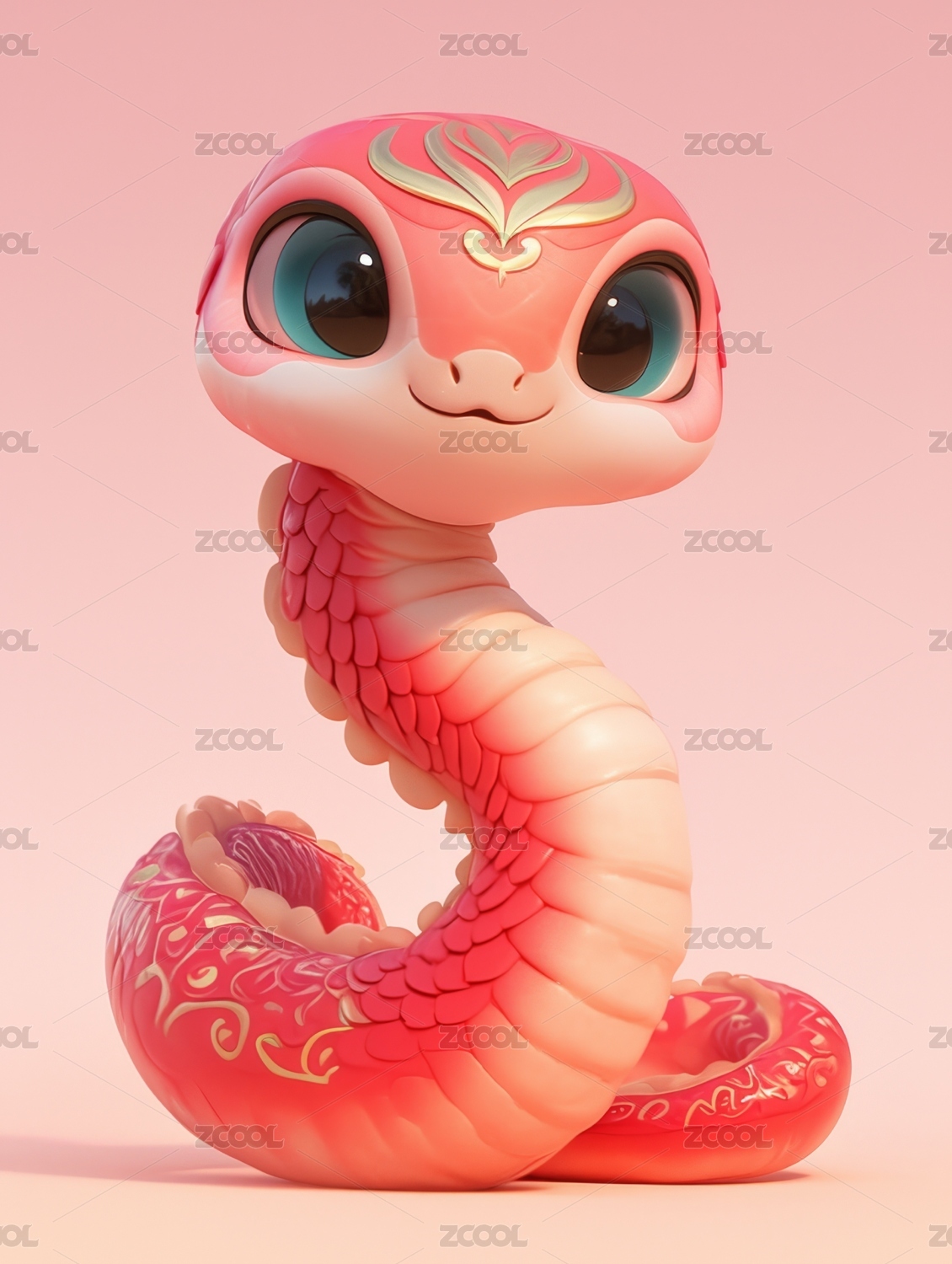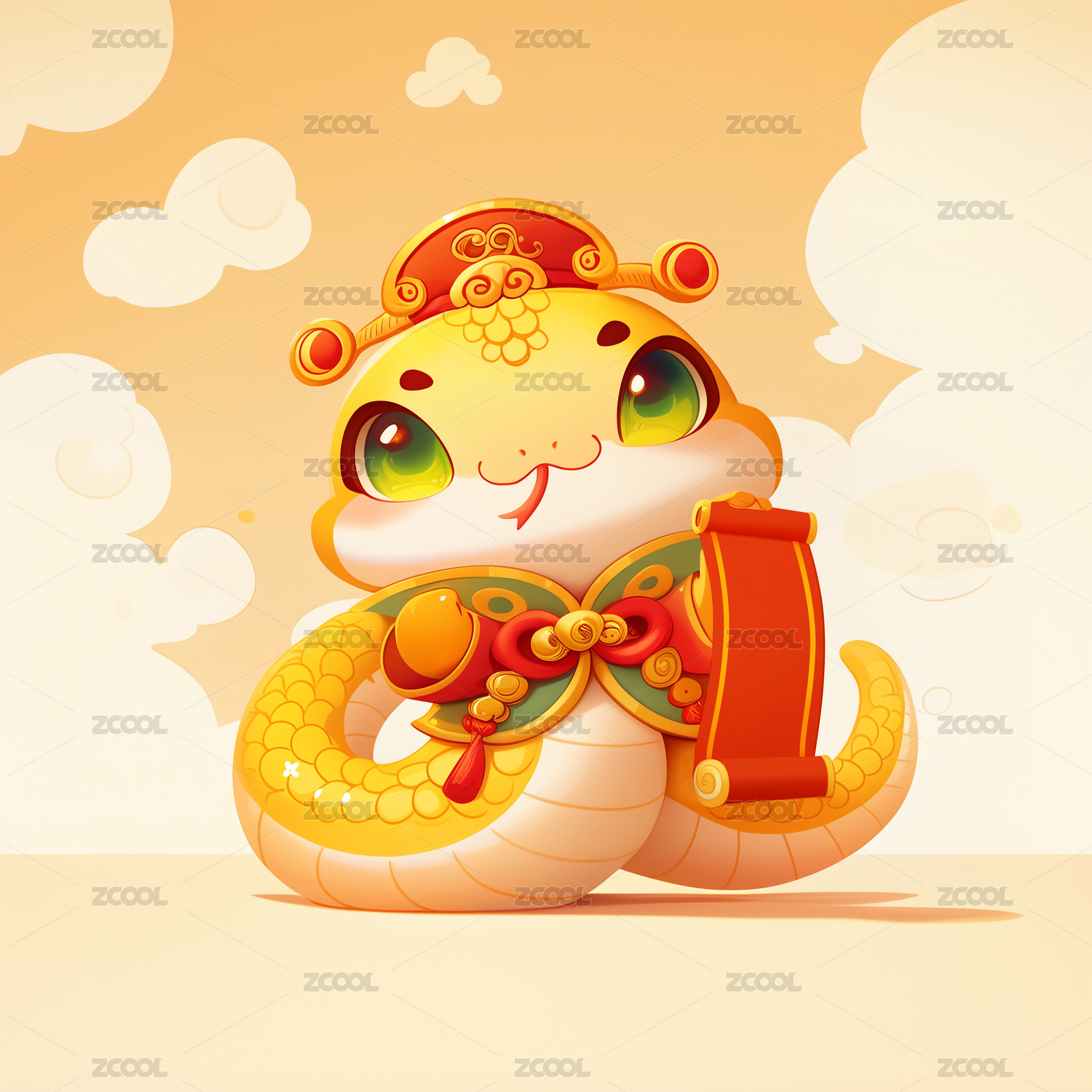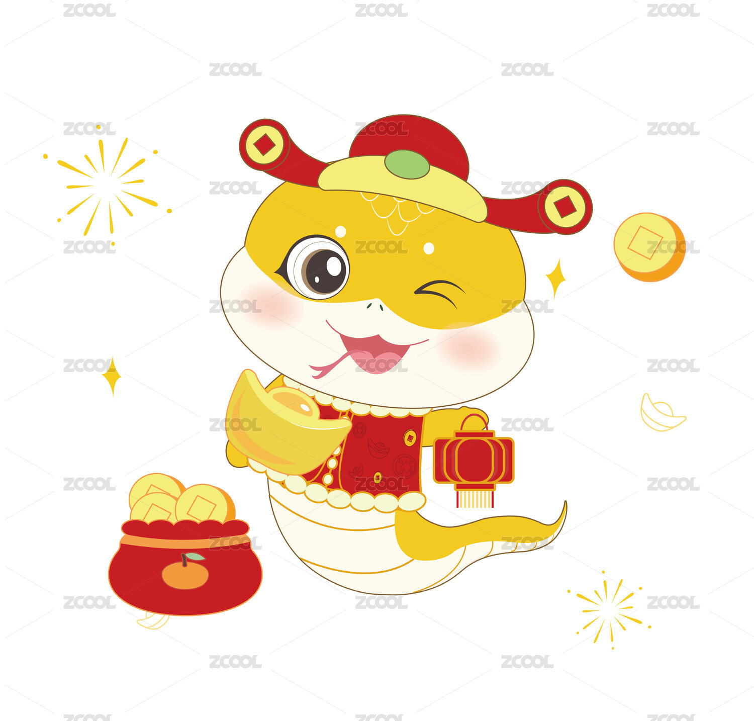 國潮春節(jié)新年可愛卡通舞獅蛇金蛇插畫
