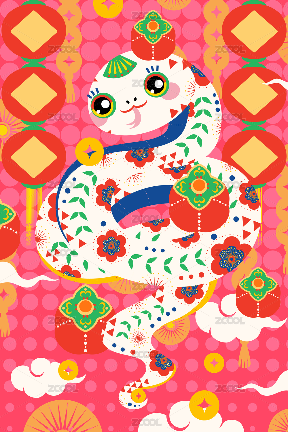 2025蛇年春節(jié)新年傳統(tǒng)喜慶蛇插畫