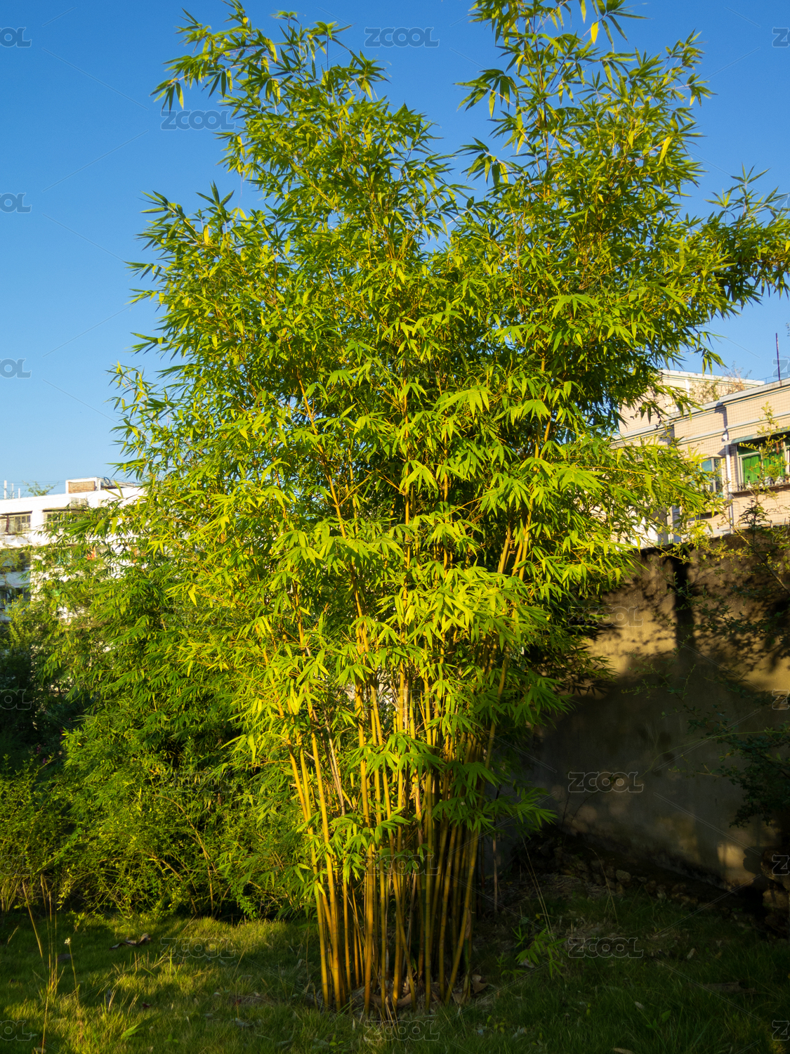 貴陽(yáng)西普陀寺的鳳尾竹與黃色背景墻