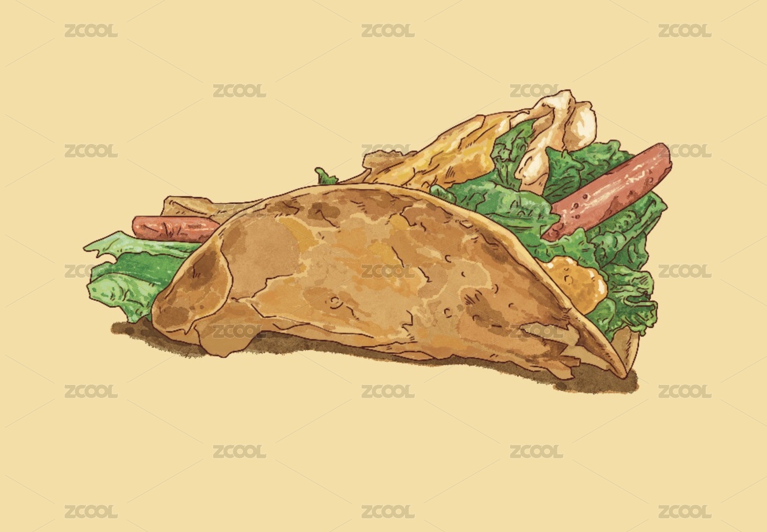 河南美食特色小吃生菜香腸雞蛋灌餅插畫