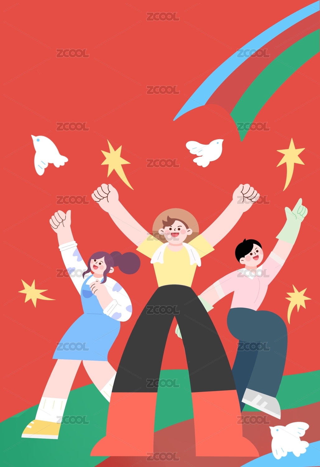 紅色正能量節(jié)日插畫
