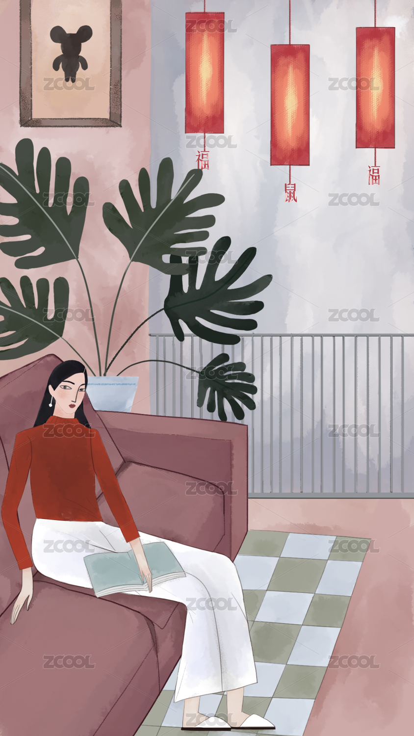 坐在沙發(fā)上思考的女人