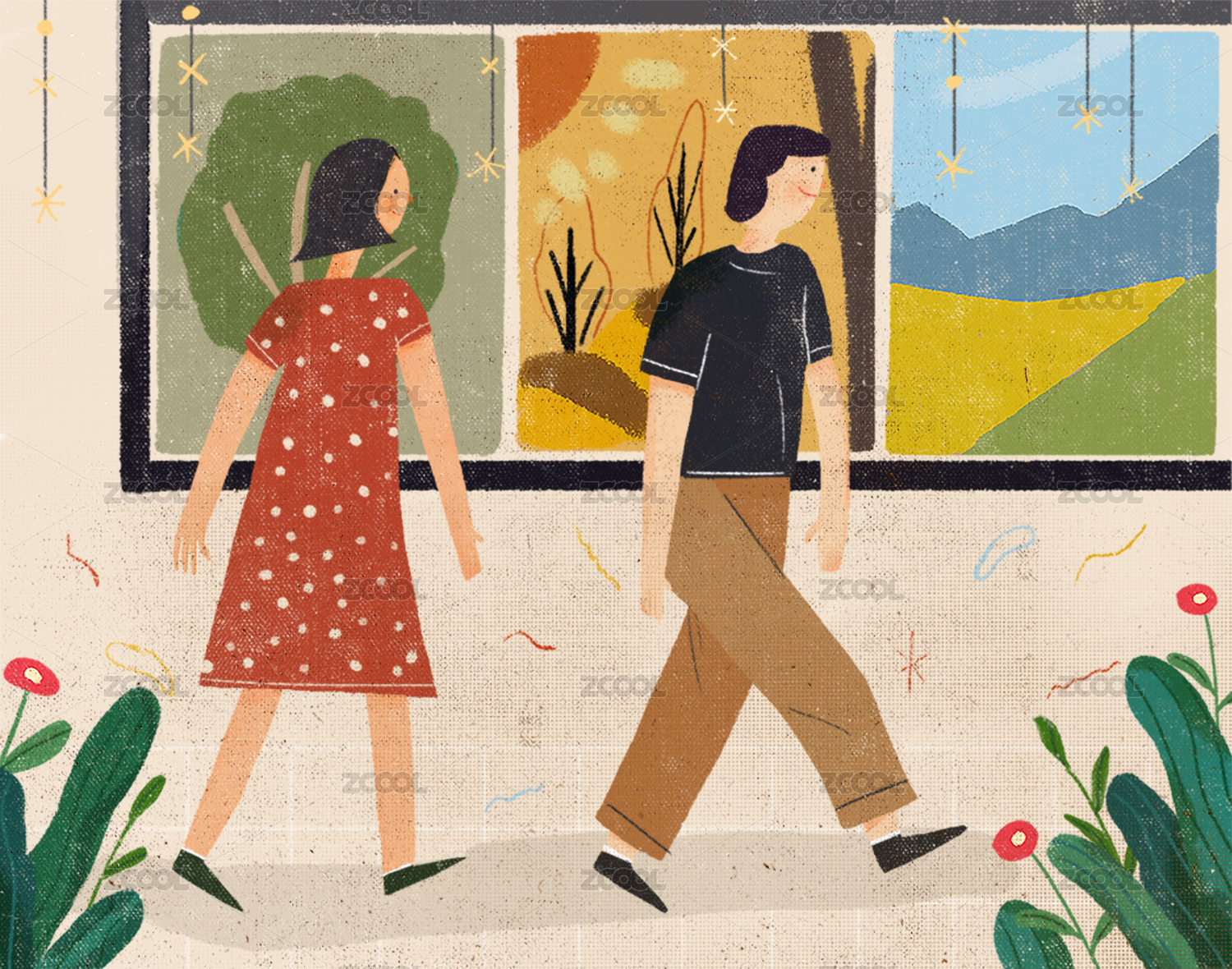 散步走路的男女生