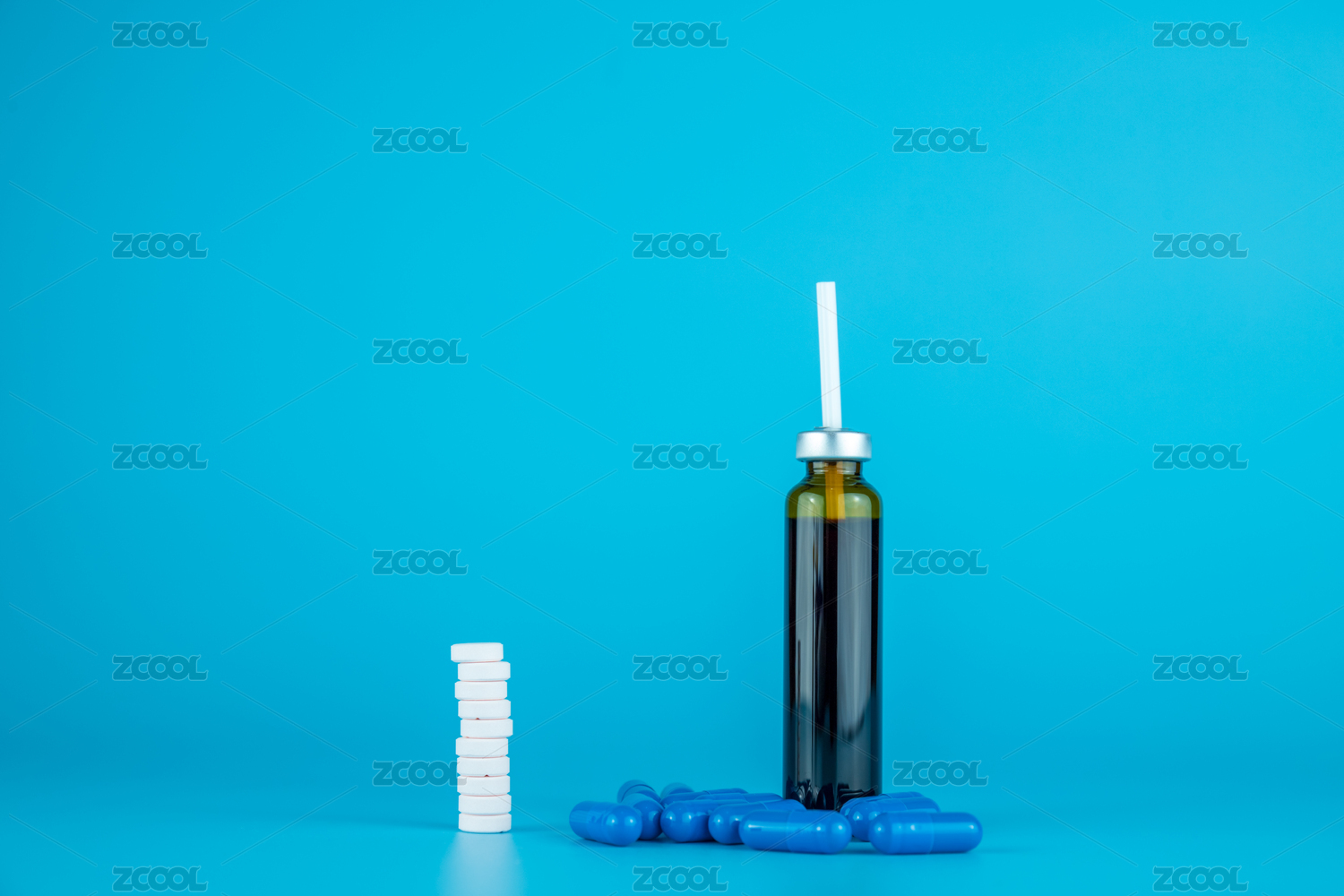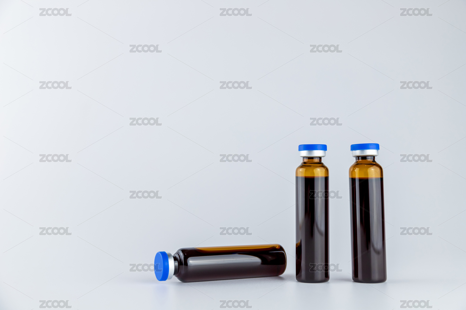 純色背景中的玻璃瓶裝口服液醫(yī)藥物品
