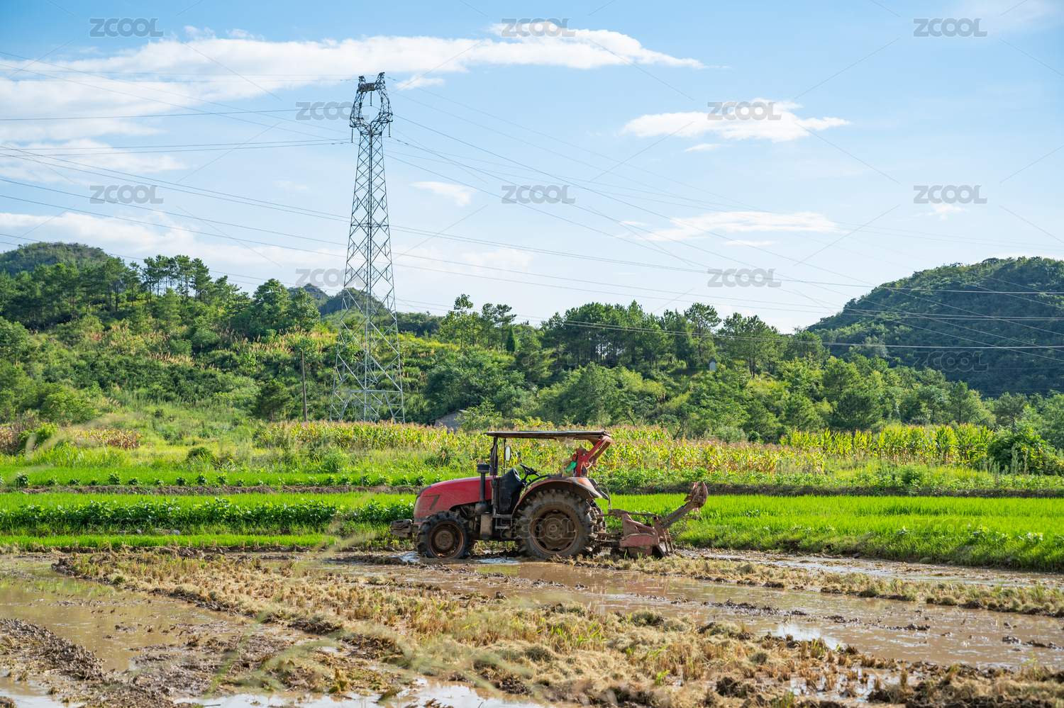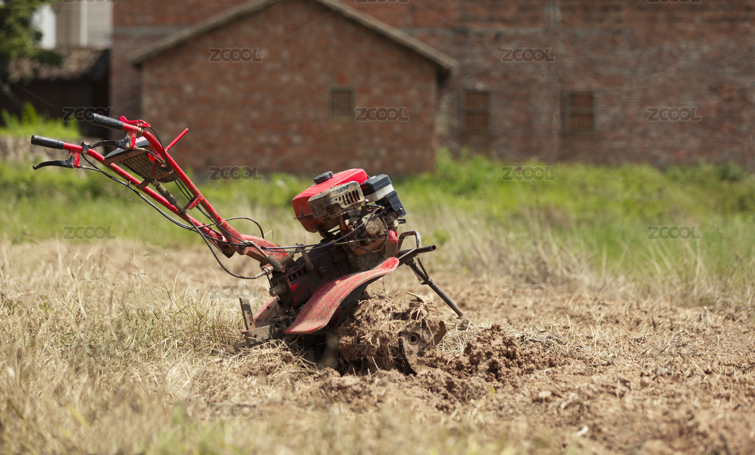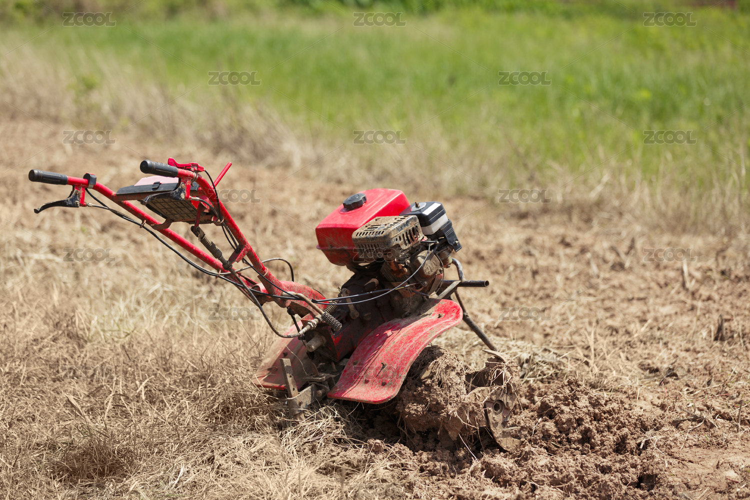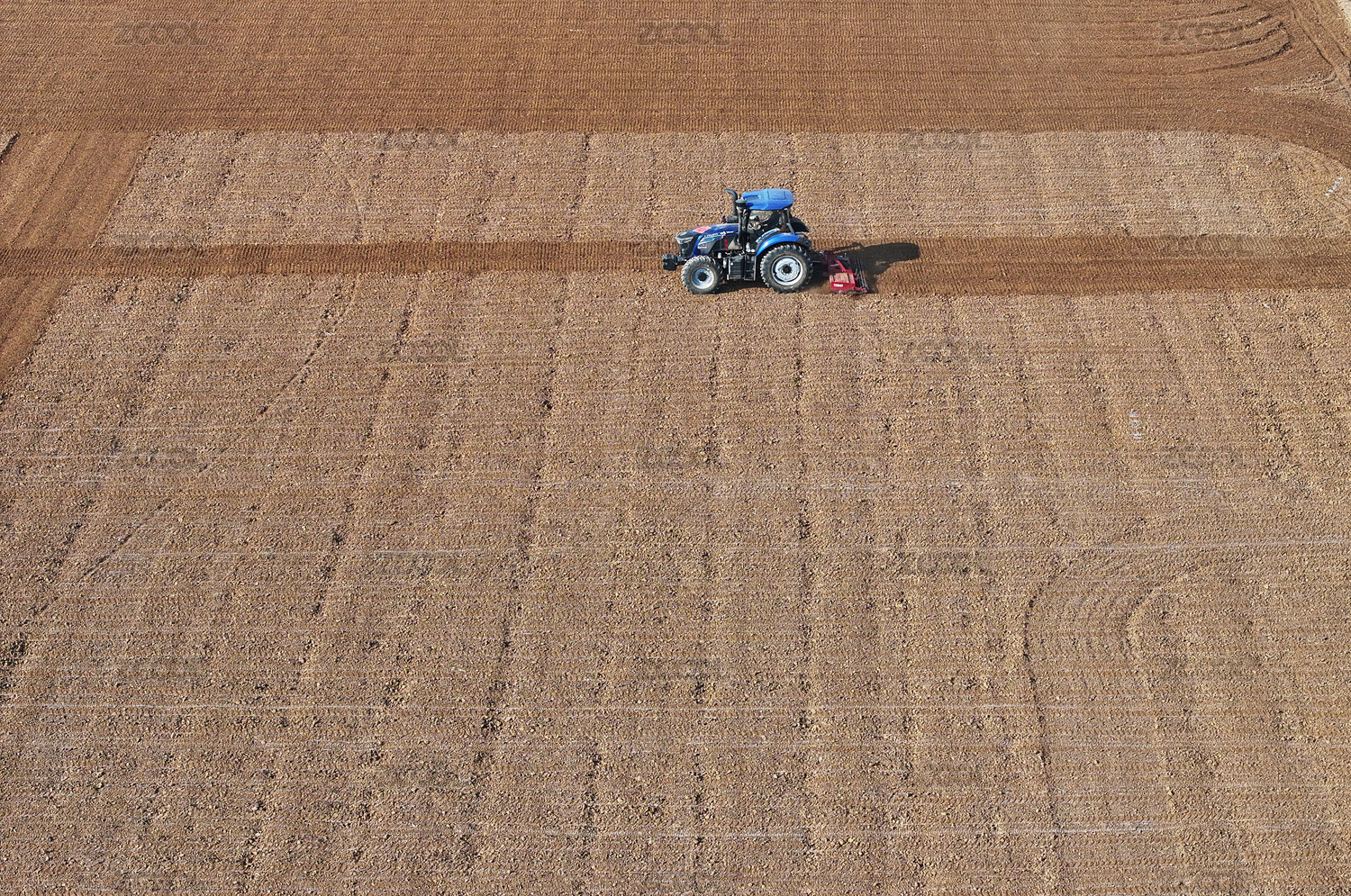 在田地里的耕田農(nóng)機(jī)